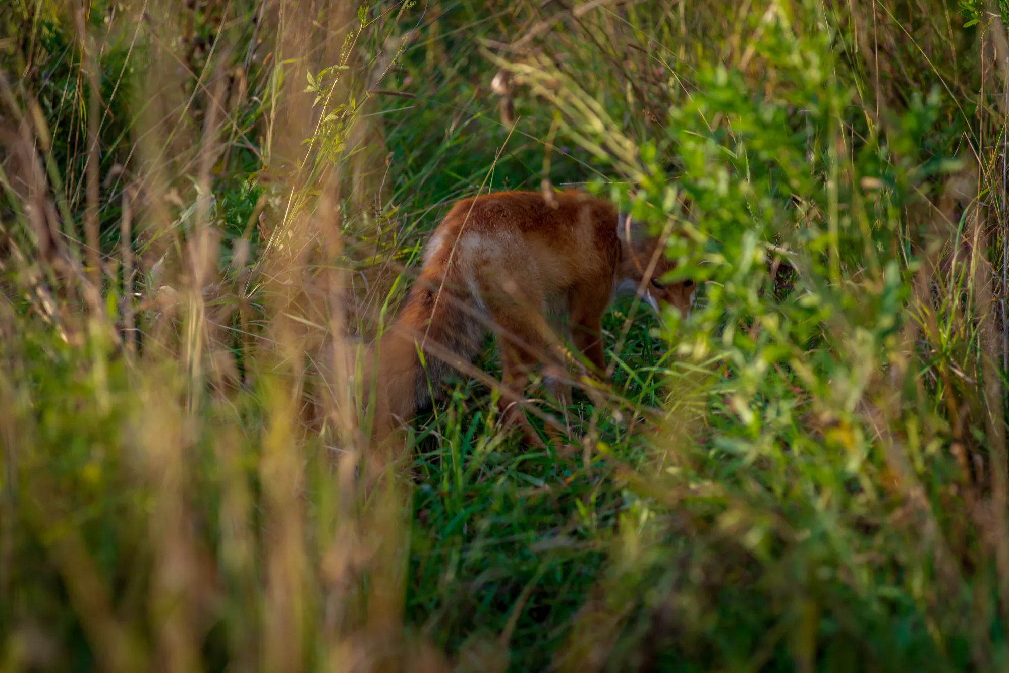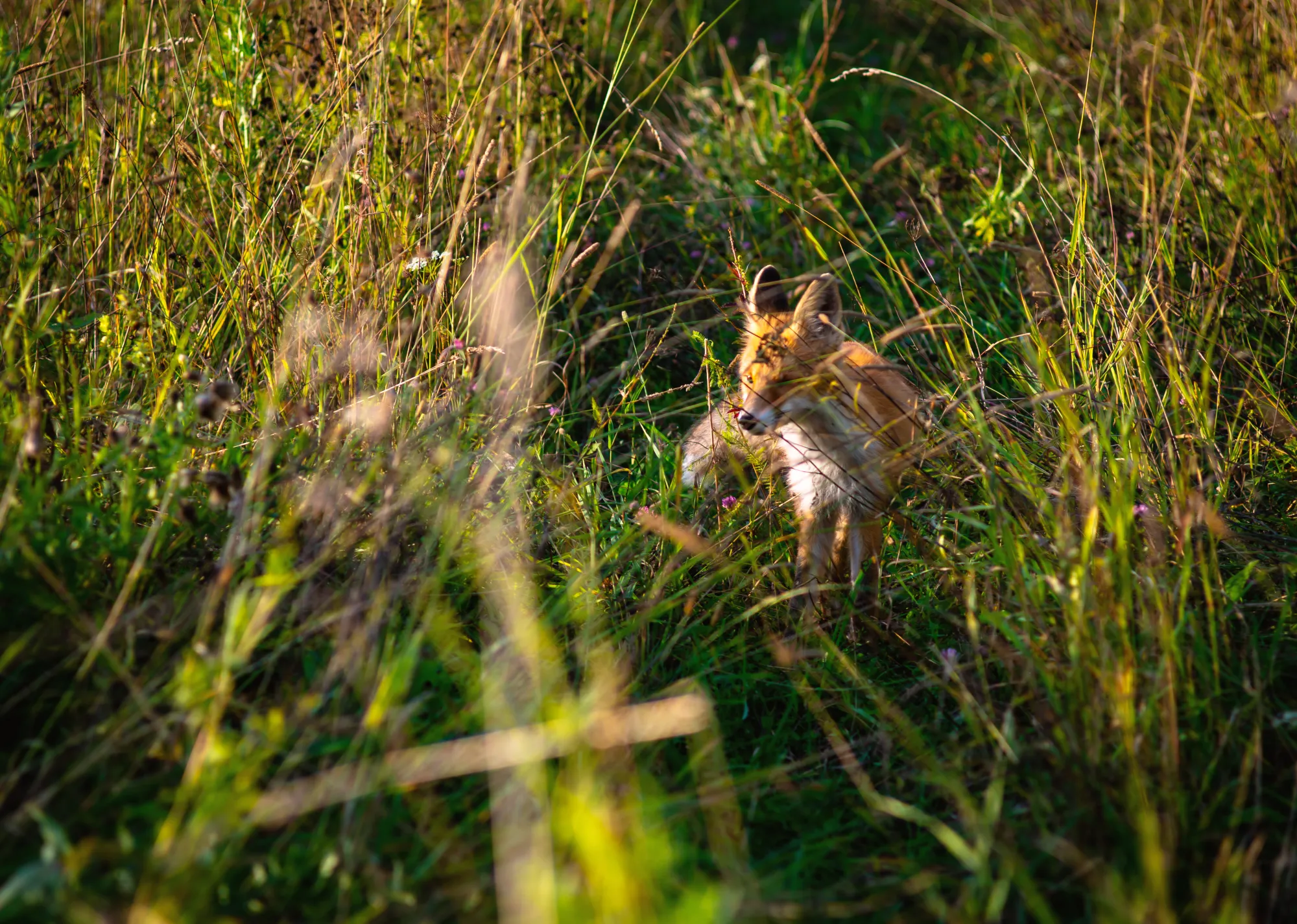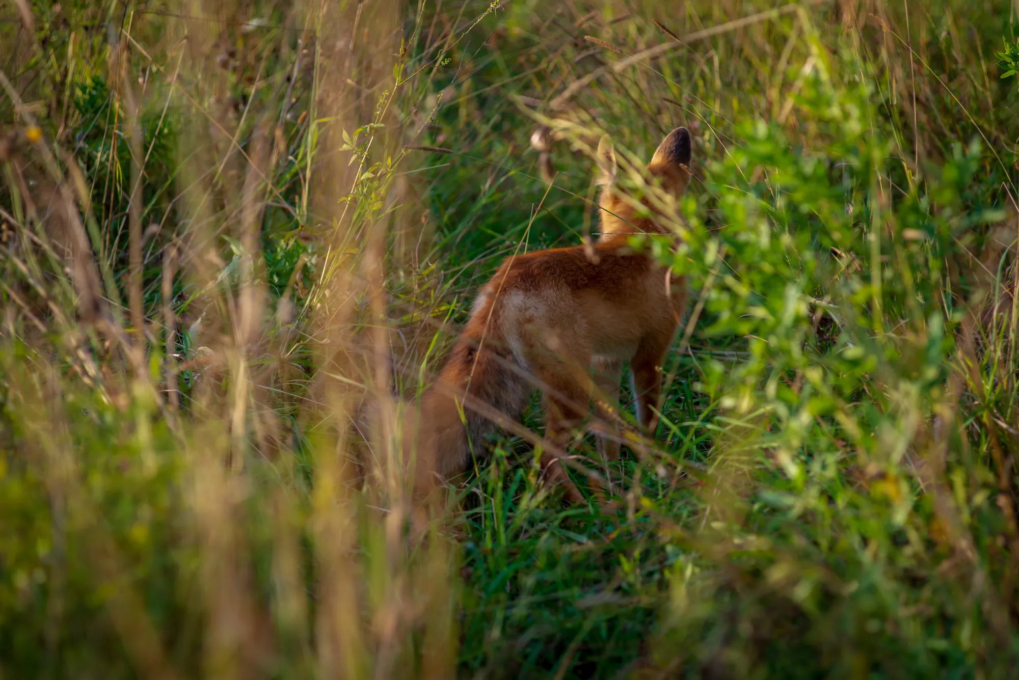 Лиса преградила нам дорогу и с любопытством нас рассматривала, а я судорожно накручивал объектив, чтобы её заснять:)