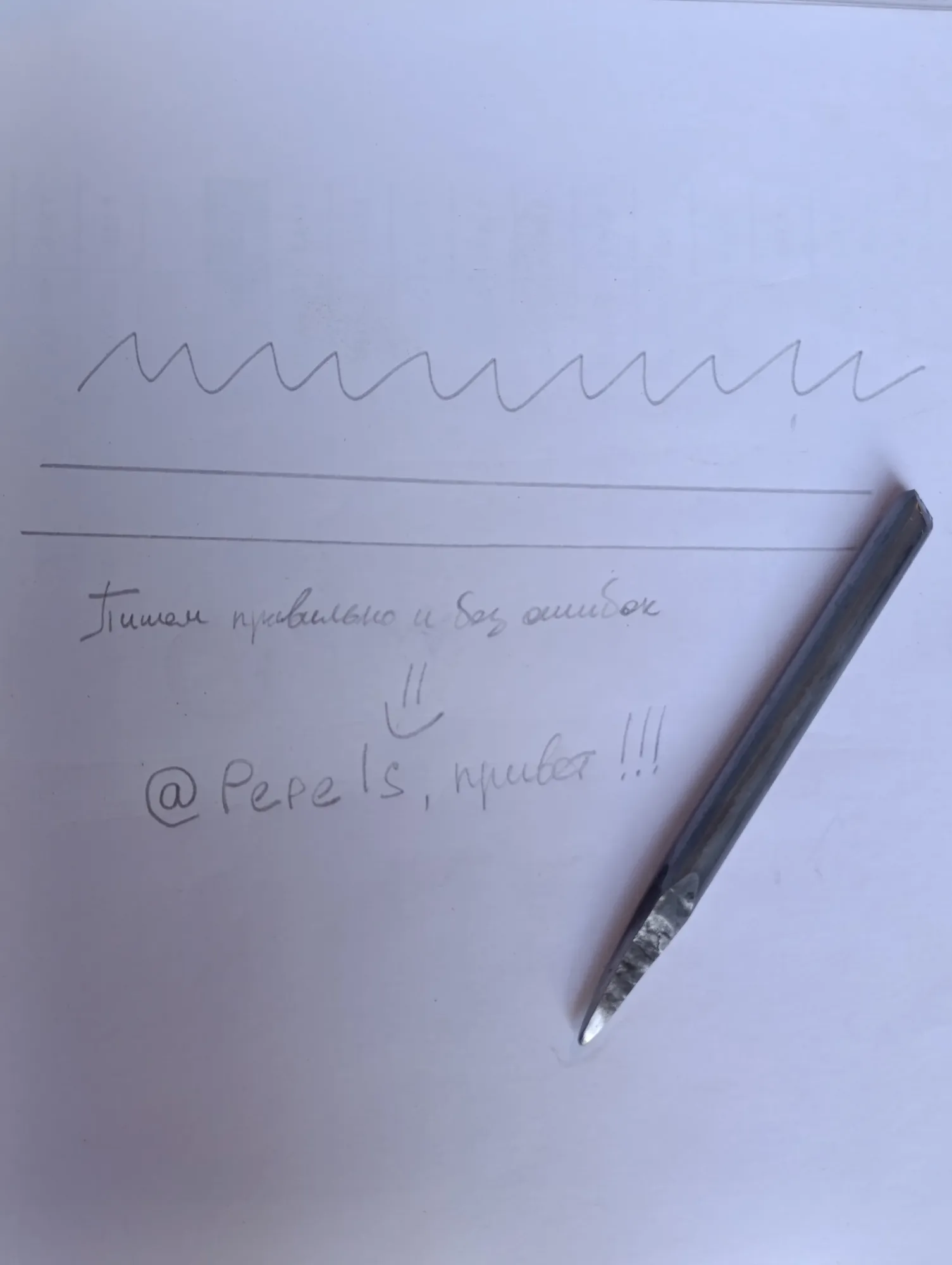 Как видите, этот незатейливый инструмент прекрасно справился со своей задачей и ни капельки не затупился. По ощущениям действительно пишется как будто карандаш высокой твёрдости Но это всё меняется путём выбора припоя с большим содержанием олова тогда написание букв будет более ярким и лёгким скольжении по бумаге.