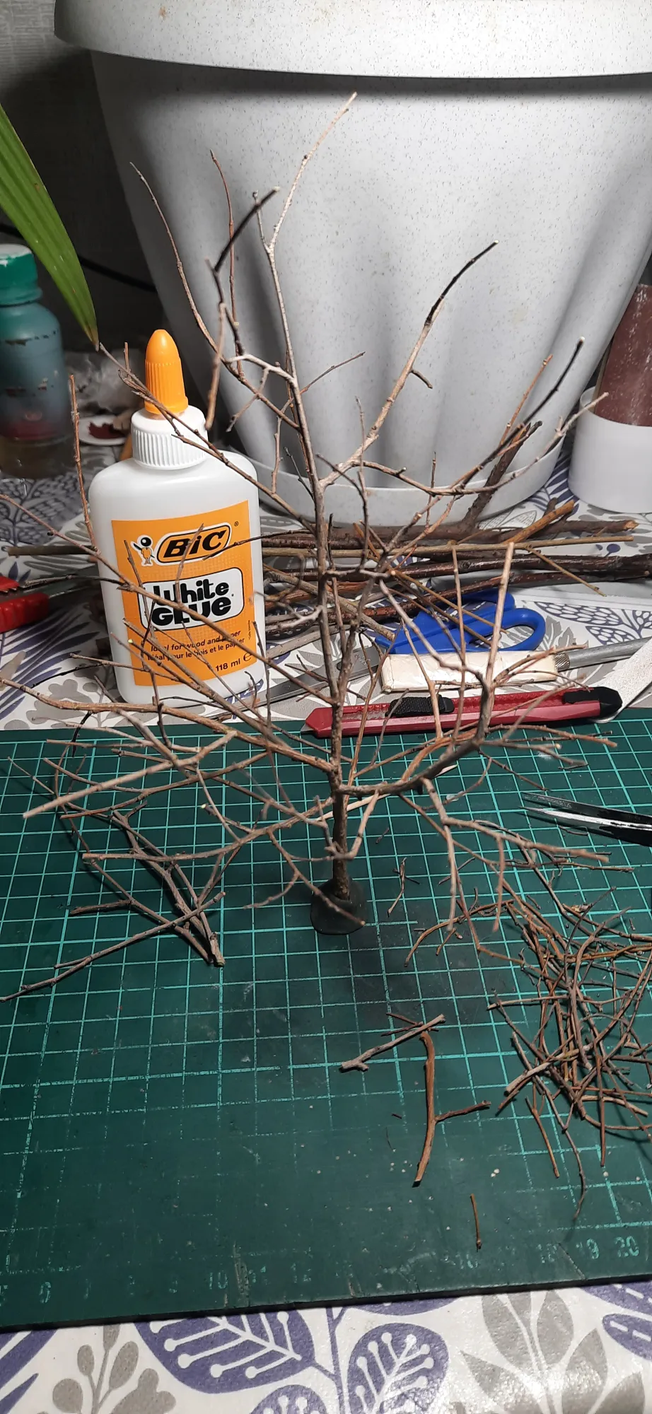 Делаем наброски деревьев. Из частей кустарников и суперклея. Ещё нужно будет сделать множественные мелкие ветки. Благо хоть листву делать не надо, так как диорама зимняя!
