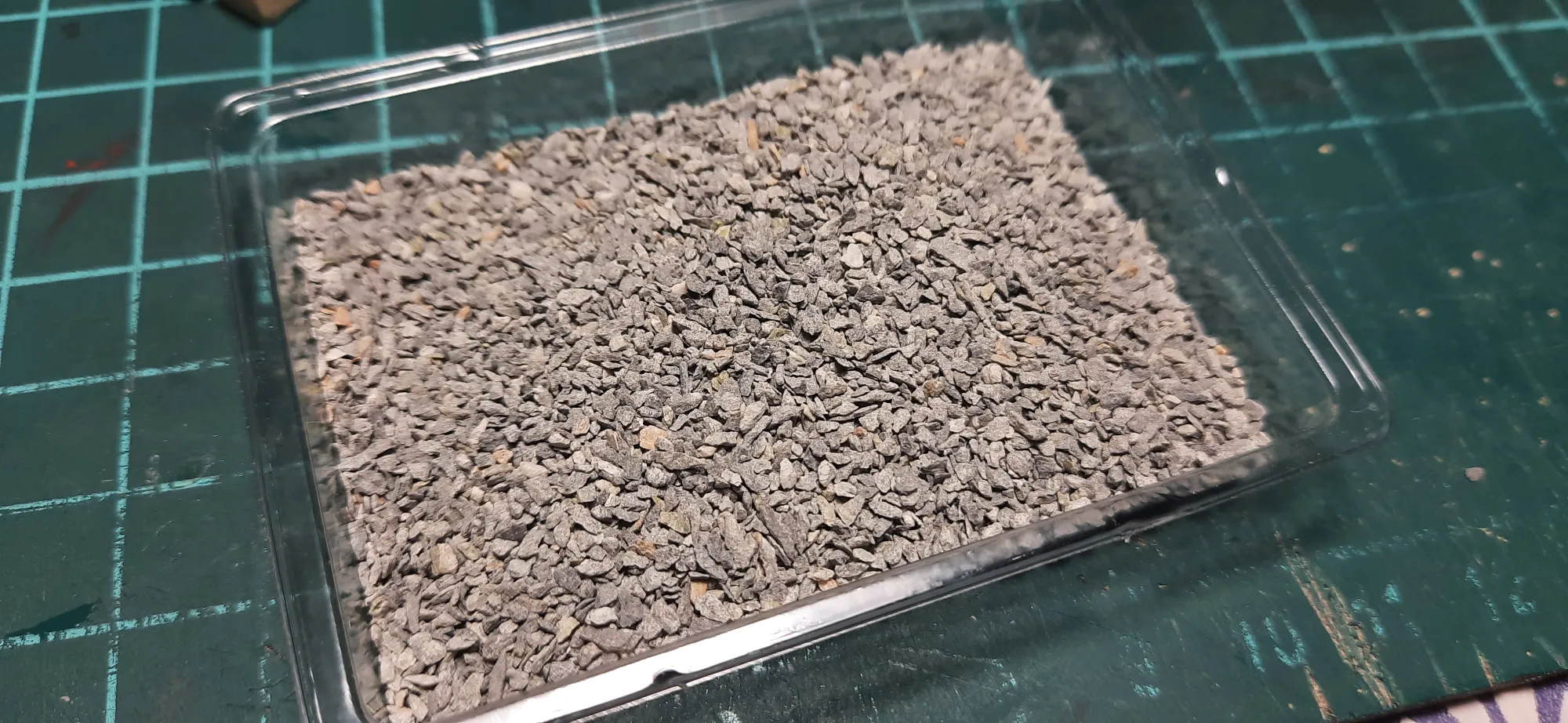 Далее необходимо изготовить железнодорожную насыпь. В Российской империи и в первые годы Советской власти для шпал на железной дороге делалось лишь возвышение из утрамбованной земли. Однако уже к концу 1930-х начал использоваться щебень. Первый его ГОСТ был утверждён в 1940-м году. Фракция щебня для отсыпи жд путей должна составлять 25-60 мм. В пересчёте на масштаб 1 к 35 размер каждого камушка должен составлять 0,7-1,7 мм.