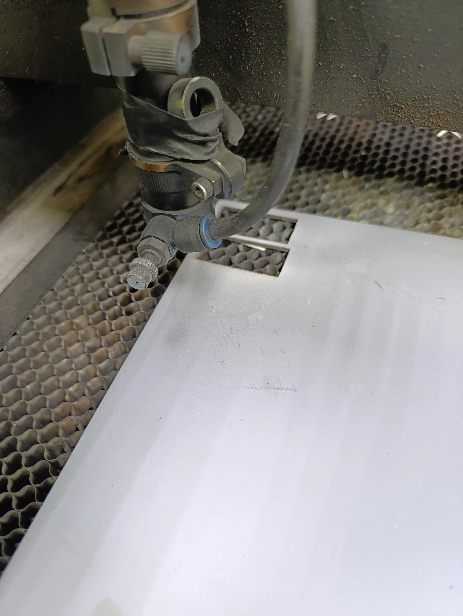 Как видите оргстекло тоже неплохо так коптит во время резки лазером.