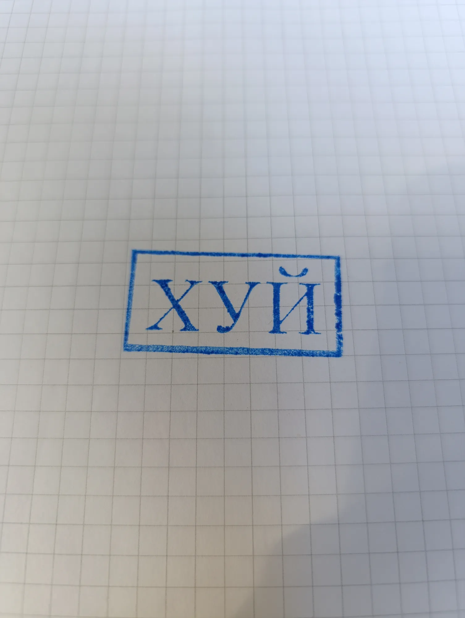 После того, как мы помокали хуй в чернила на какой-то мягкой штучке, на штампельной подушке в простонародье, мы можем с гордостью поставить первый штамп, первый оттиск нашего замечательного хуя!