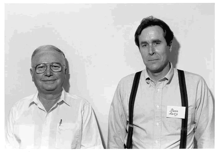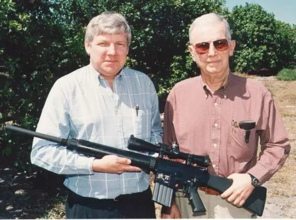 Юджин Стоунер и лейтенант-полковник Дейв Лютз, руководитель программы по модернизации штурмовой винтовки М16А1, за что его называют отцом М16А2.