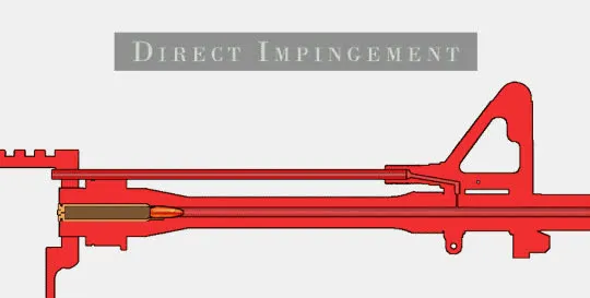 Газоотводная система прямого действия — Стоунер реализовал систему, в которой пороховые газы по трубке подавались непосредственно к затворной раме, исключая необходимость в тяжелом поршне и штоке.