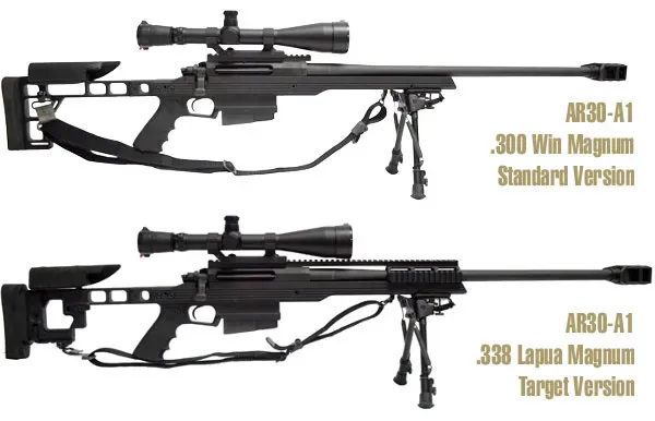 Представленная в 2000 году винтовка AR-30 создавалась как уменьшенная версия .50 BMG AR-50, она предназначалась для снайперских калибров вроде .338 Lapua Magnum и .300 Winchester Magnum.