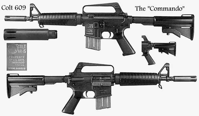 М4 своими корнями происходит всё из той же войны во Вьетнаме: Кольт поставлял экспериментальные укороченные автоматы линейки Colt 609 (XM177), также известные как Colt Commando, предназначенные для ближнего боя.