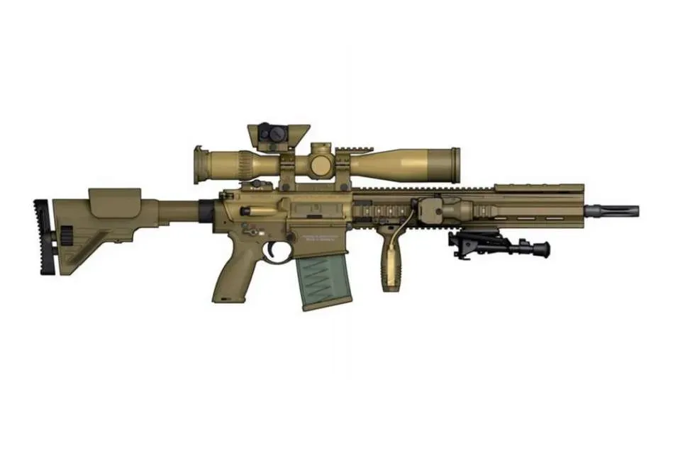 Самозарядная винтовка H&K G28, военный вариант гражданской MR308, которая, в свою очередь, происходит от штурмовой винтовки H&K 417, поступила на вооружение под индексом M110A1 CSASS.