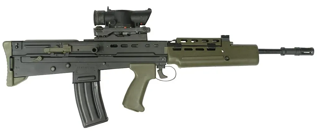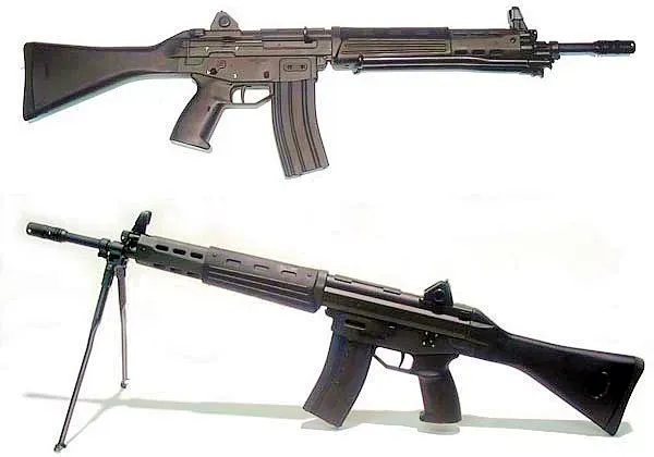 Газоотводная система прямого действия направляла горячие пороховые газы по трубке непосредственно к затворной раме. Приклад располагался на одной линии со стволом, что кардинально снижало подброс дула и облегчало контроль оружия. Винтовка создавалась под патрон .223 Remington (позднее стандартизованный как 5.56x45mm NATO) — малокалиберную высокоскоростную пулю.