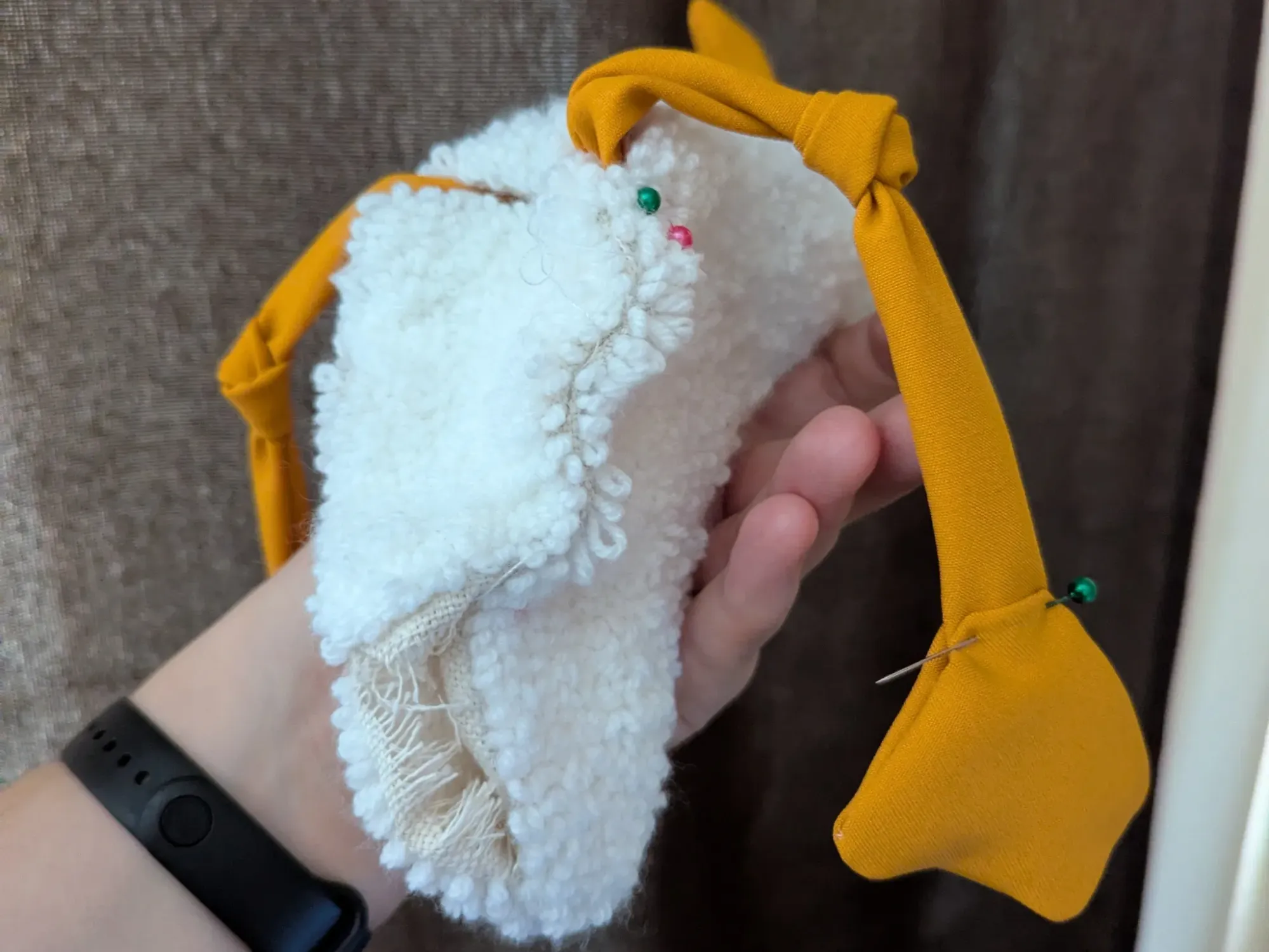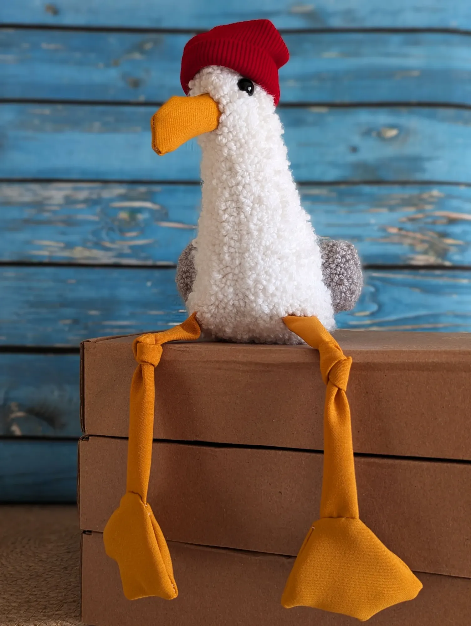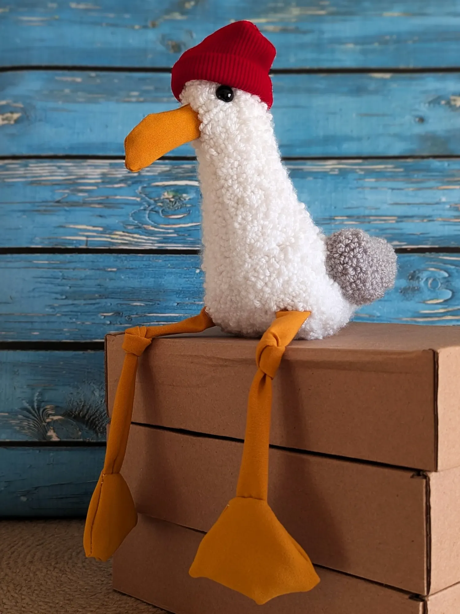 Низ был набит стеклянным гранулятом, так что попка у него тяжёлая, сидит очень устойчиво :)