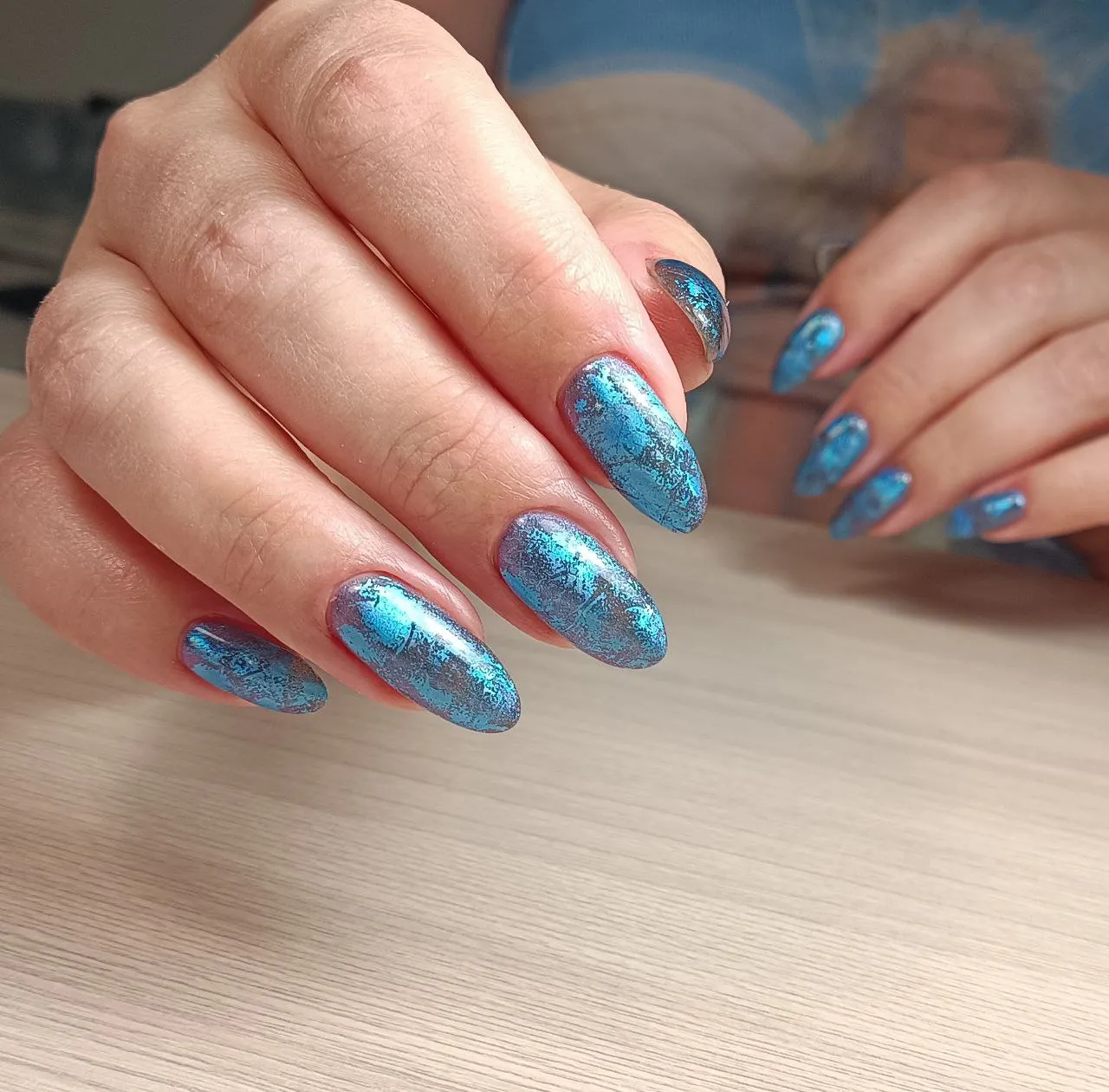 Лёд. В разном ракурсе и в разном падении света смотрится по разному. (Это одна и та же работа!). (Кошачий глаз + фольга)