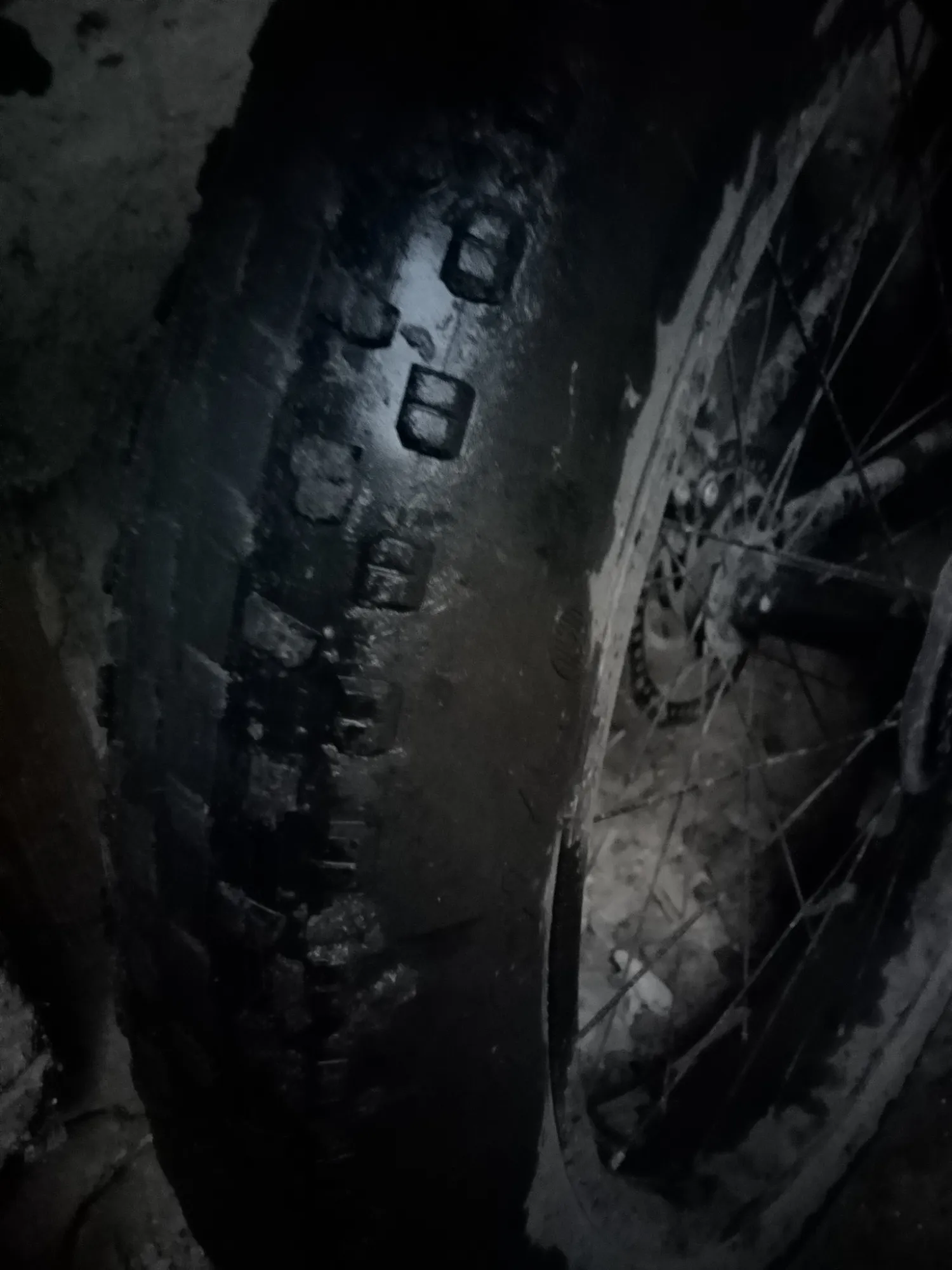Лысеватое колесо ... прошло более 1000 км. Хотя эти дороги 😖🫣 могли б ухандокать неподготовленный велосипед, а фэтбайк Китайский выдержал. АВЕ железный фэтбайк 🤗. Аве