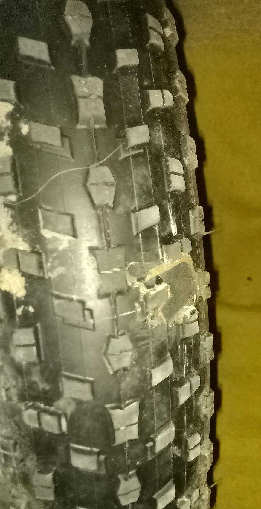 Резину ту частично изорвал при установке. Годы не пощадили ее , а также +3 на улице мешали забортировать . К этому можно ещё добавить, что неправильно шину забортировал. Итог закономерен! Частично бортируемую поверхность выдрал. 😉. Поэтому и делал на старом колесе.
