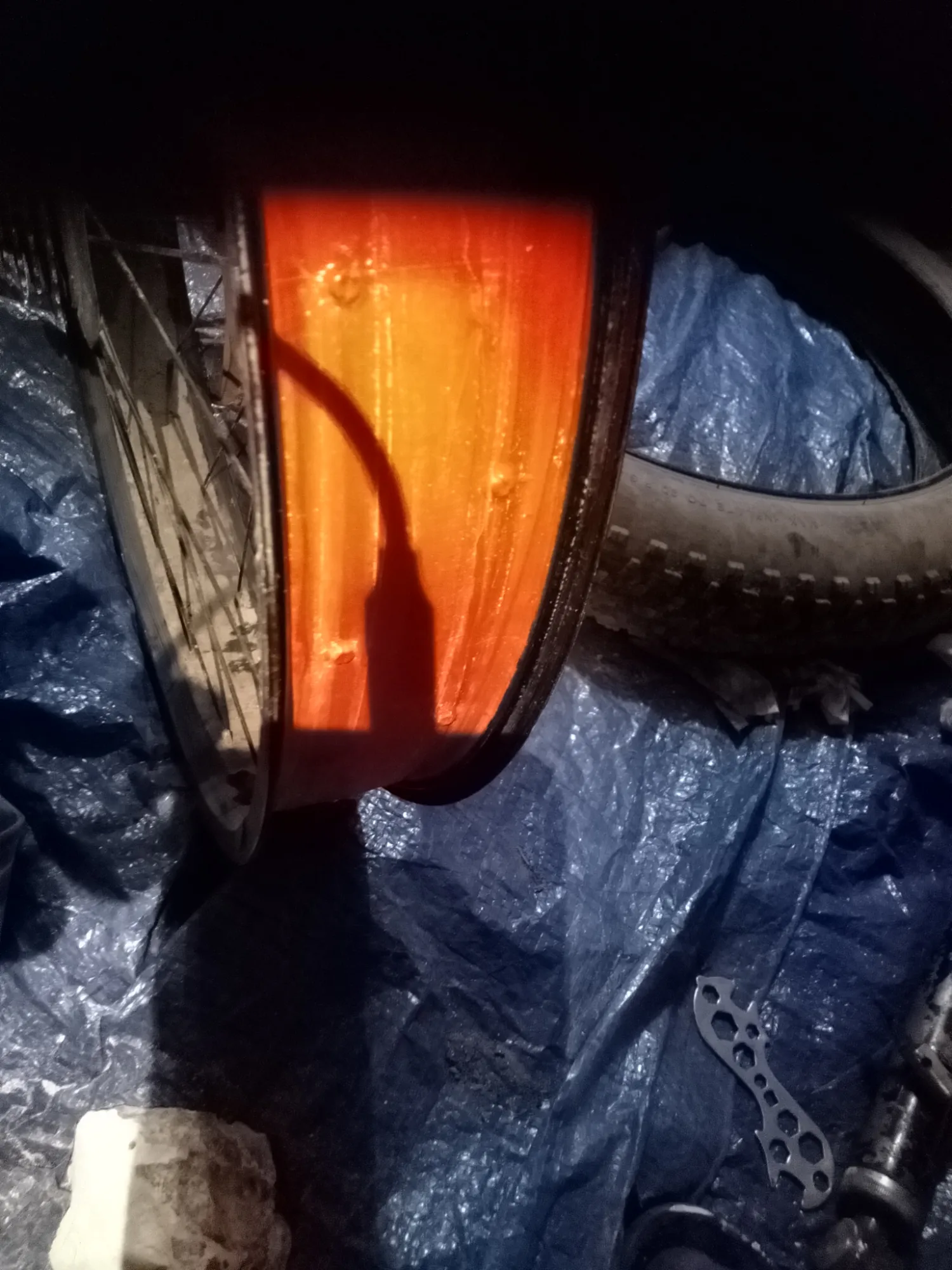 Натер мелом велокамеру. Зачем? Так меньше шансов, что велокамера по жаре приклеится к ободу или покрышке. Технологии 20 века... Ведь сопромат не обмануть.