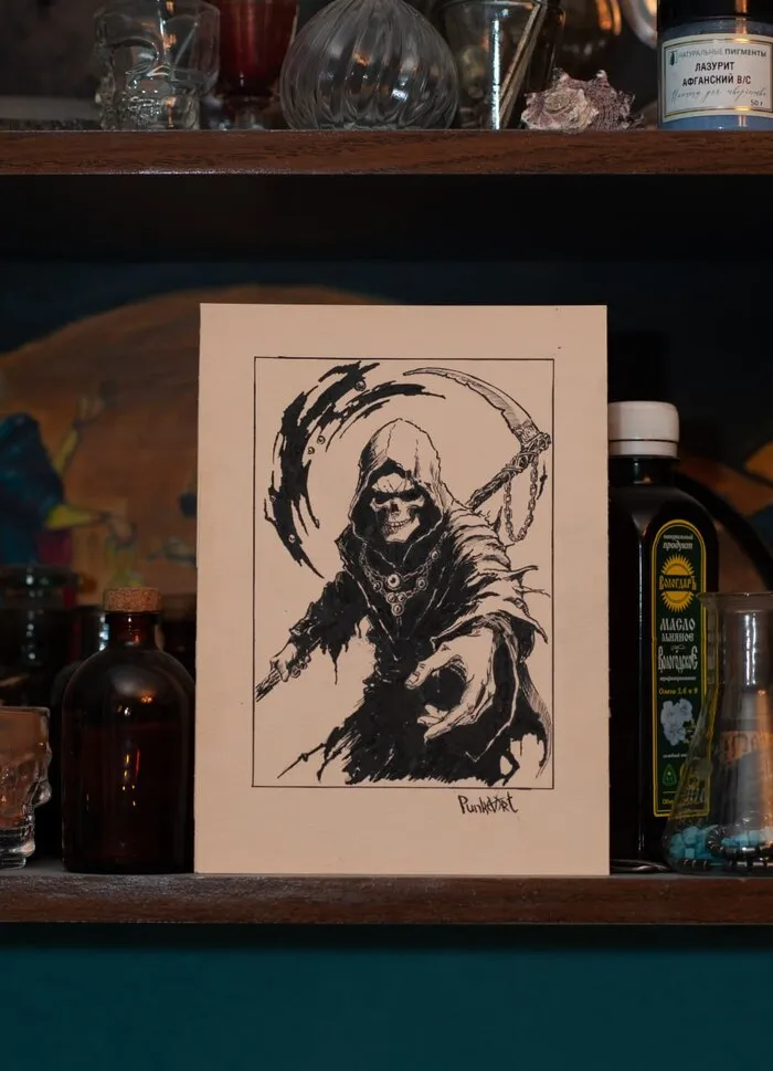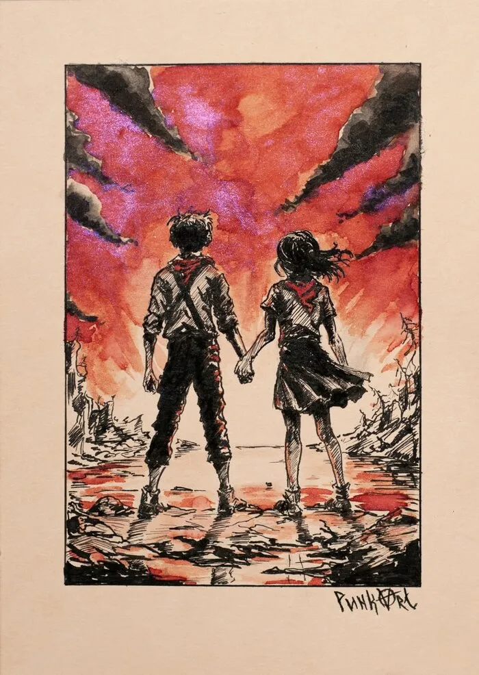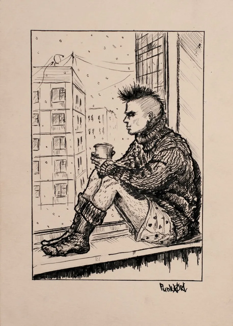 Ну и чего можно наделать таким тру-панковским набором цветов? А что угодно. Ну вот, скажем, портрет. Правда, тут я немного сжульничал и на фон намазал остатки кофе из чашки. Но в целом это вполне себе вписывается в концепцию)