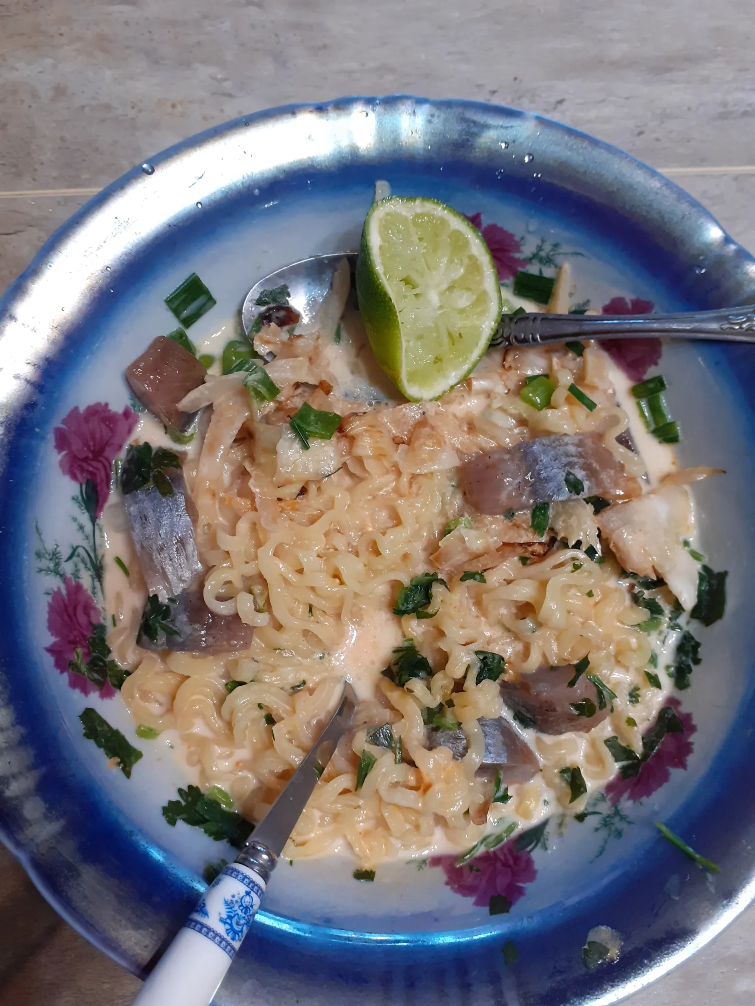 Мне не понравилось: слишком сладкий маринад селедки, но это я сама виновата. Ощущение животного молочного жира и его запах. Я думаю, на кокосовом молоке это блюдо будет в разы круче, я попробую. Корица в дошичной специи ещё больше выделяется за счет молока, не очень приятно( Ну и порция слишком большая, при том что я добавляла не весь бульон.