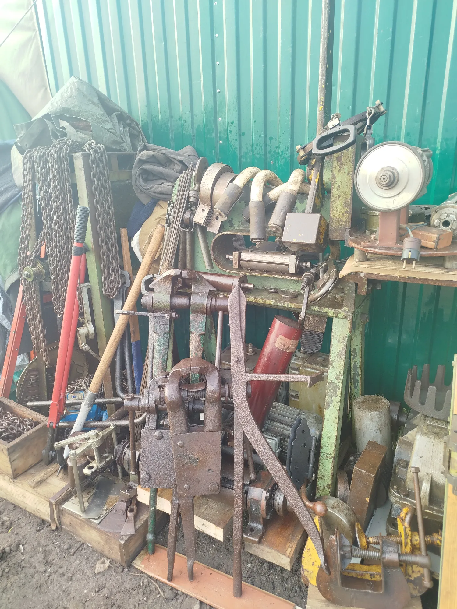 Офигенно здоровые ножницы и тиски. Все смазано и готово к работе. А вон там справа мотор стоит- теперь мне нужна и полировка.