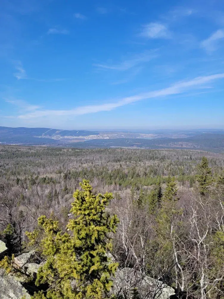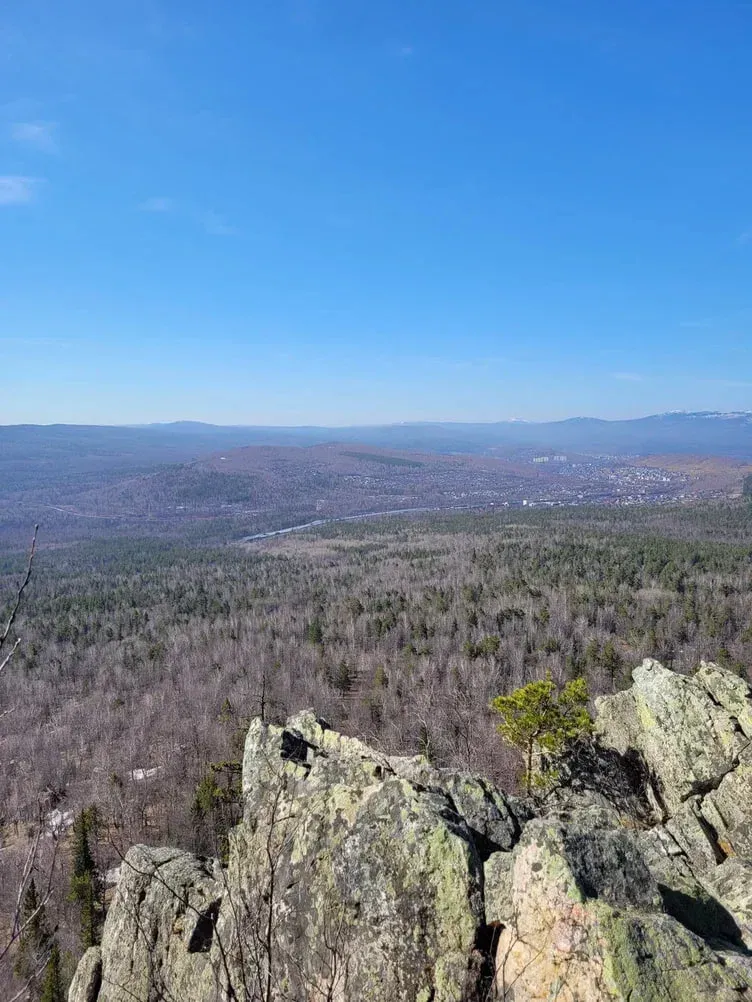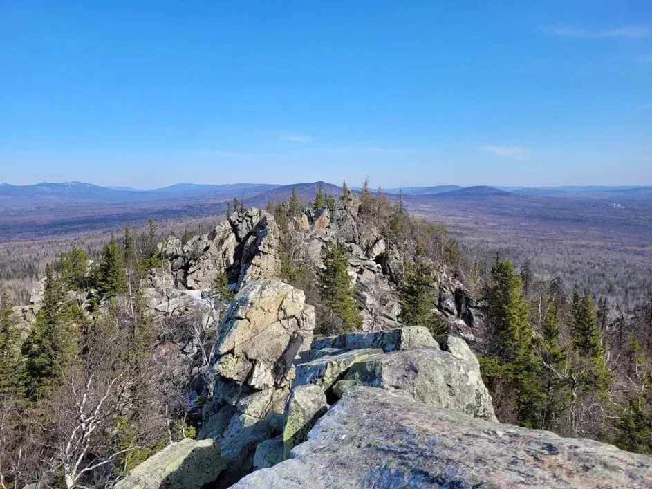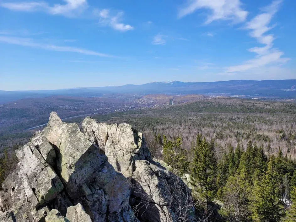 С сопки открывается вид на города Златоуст и Миасс, а так-же другие вершины Таганая.