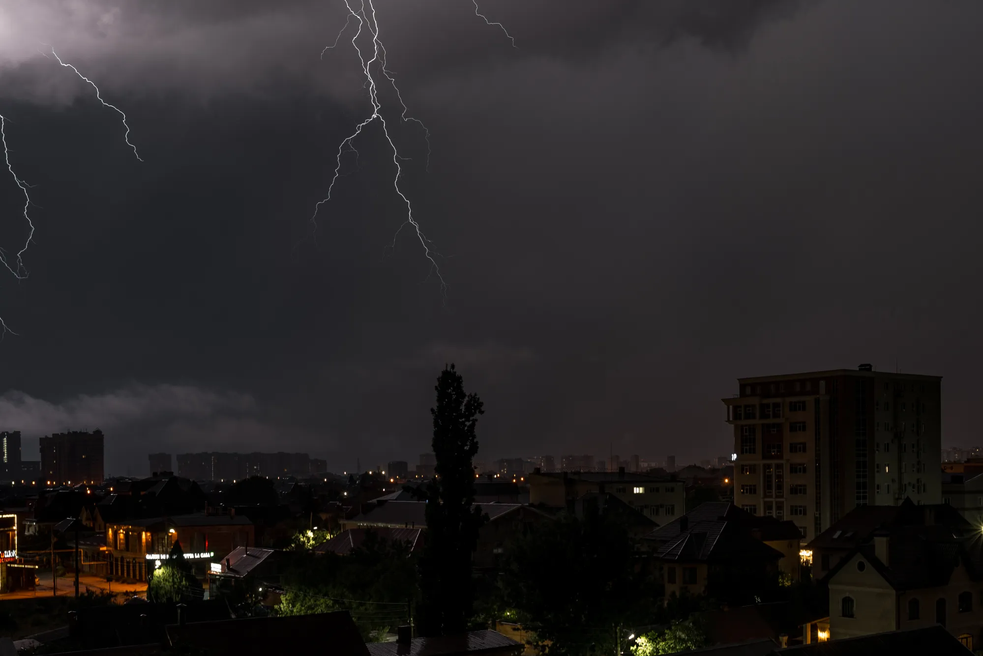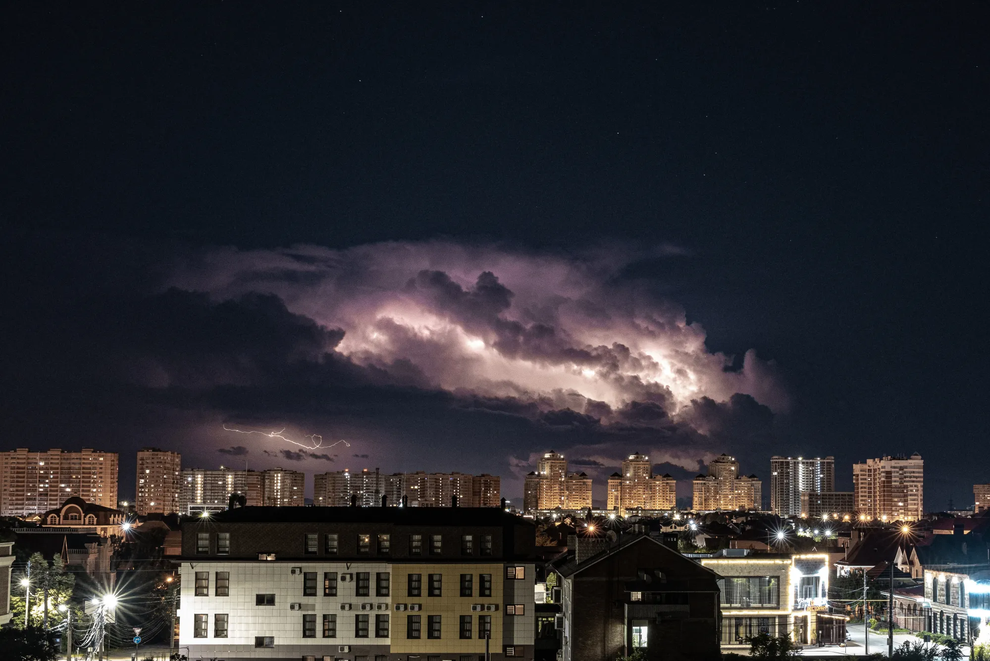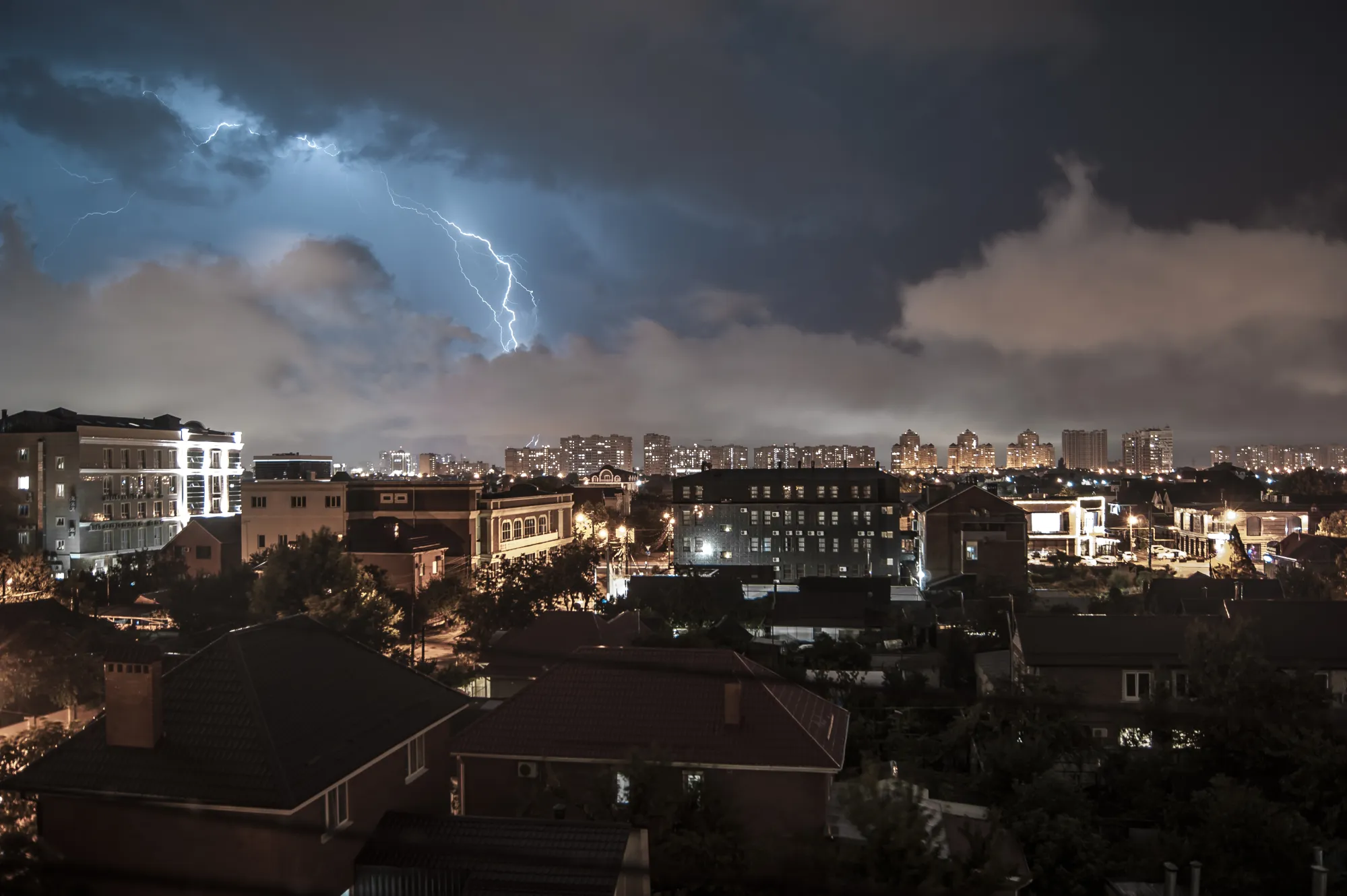 В любой камере есть режим BULB (режим ручной выдержки), это когда выдержка длится столько, сколько нажата кнопка спуска затвора. Поджимаешь диафрагму до f8 или вроде того, iso 100 и режим bulb. Направляешь в сторону где сверкает, открываешь матрицу и ждёшь пока сверкнёт, хоть 1 молния, хоть 10, сколько тебе уже захочется. Отпускаешь кнопку и вуаля, все молнии пойманы. Сложного ничего нет ... быстро наскучивает, на самом деле. )