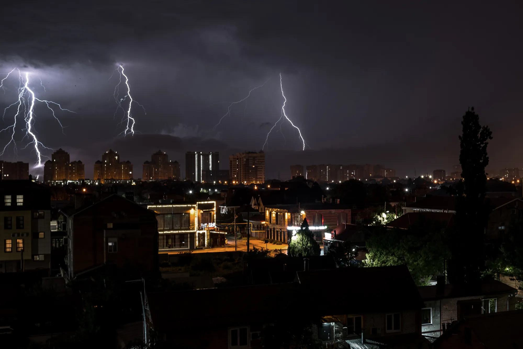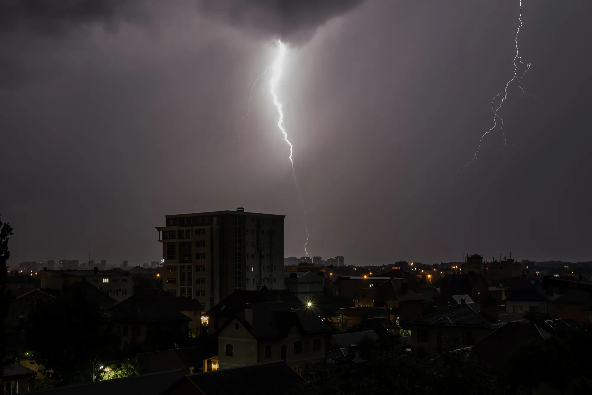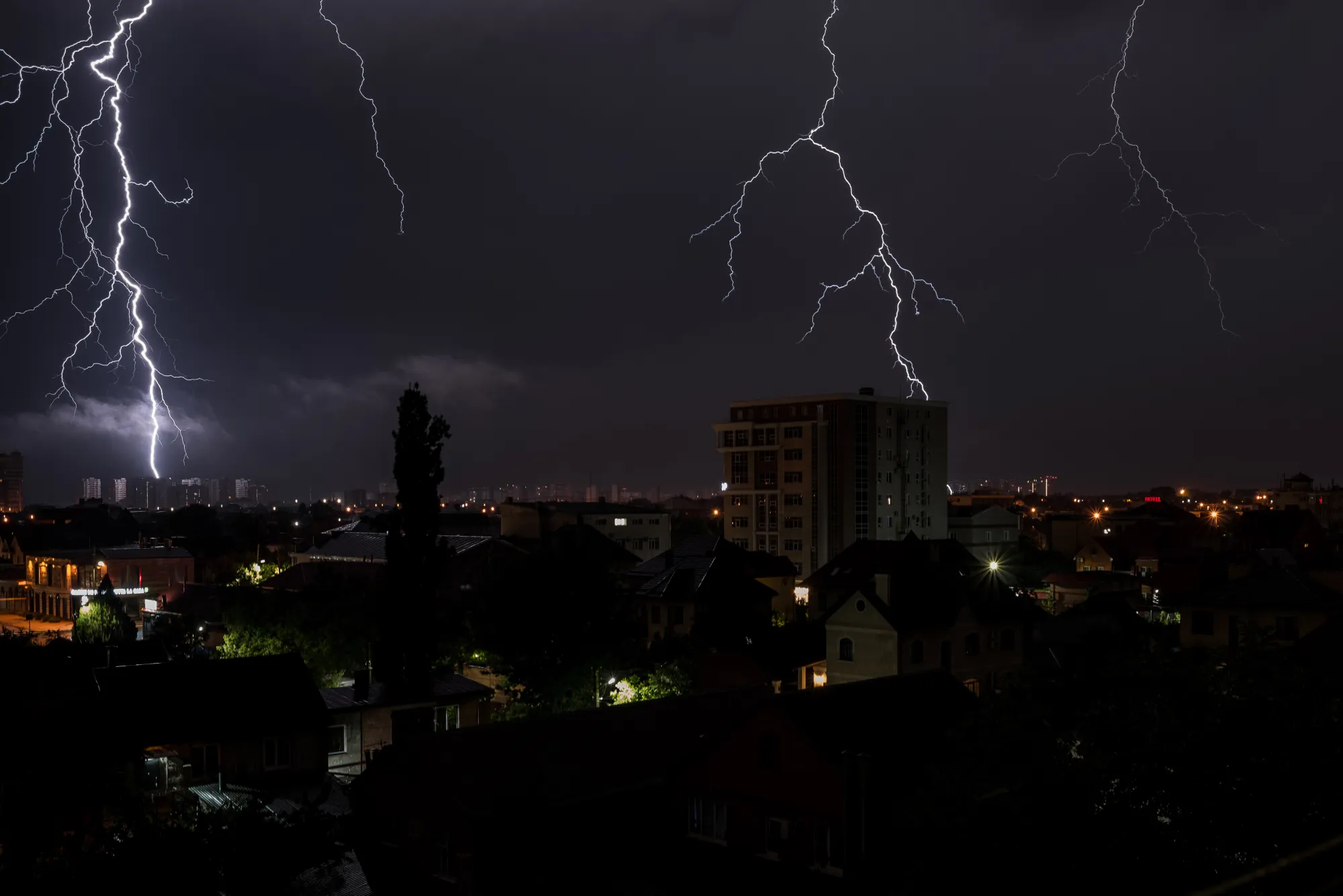 В любой камере есть режим BULB (режим ручной выдержки), это когда выдержка длится столько, сколько нажата кнопка спуска затвора. Поджимаешь диафрагму до f8 или вроде того, iso 100 и режим bulb. Направляешь в сторону где сверкает, открываешь матрицу и ждёшь пока сверкнёт, хоть 1 молния, хоть 10, сколько тебе уже захочется. Отпускаешь кнопку и вуаля, все молнии пойманы. Сложного ничего нет ... быстро наскучивает, на самом деле. )