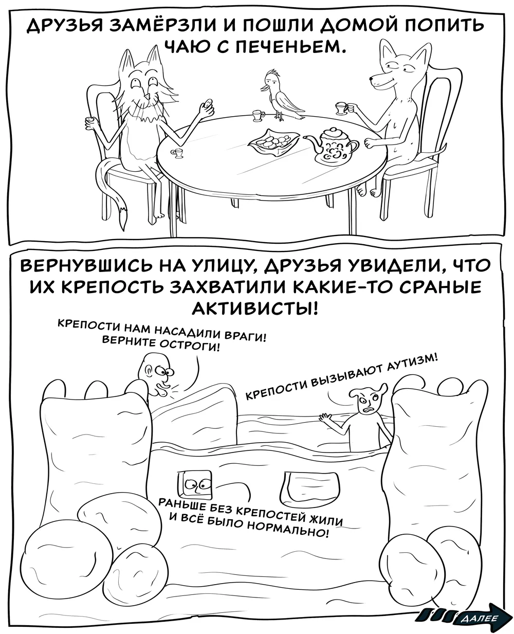 FrimStrip Опубликовано 3 недели назад [моё] Юмор Комиксы Зима Странный юмор Активисты Осуждаем. Читать дальше...