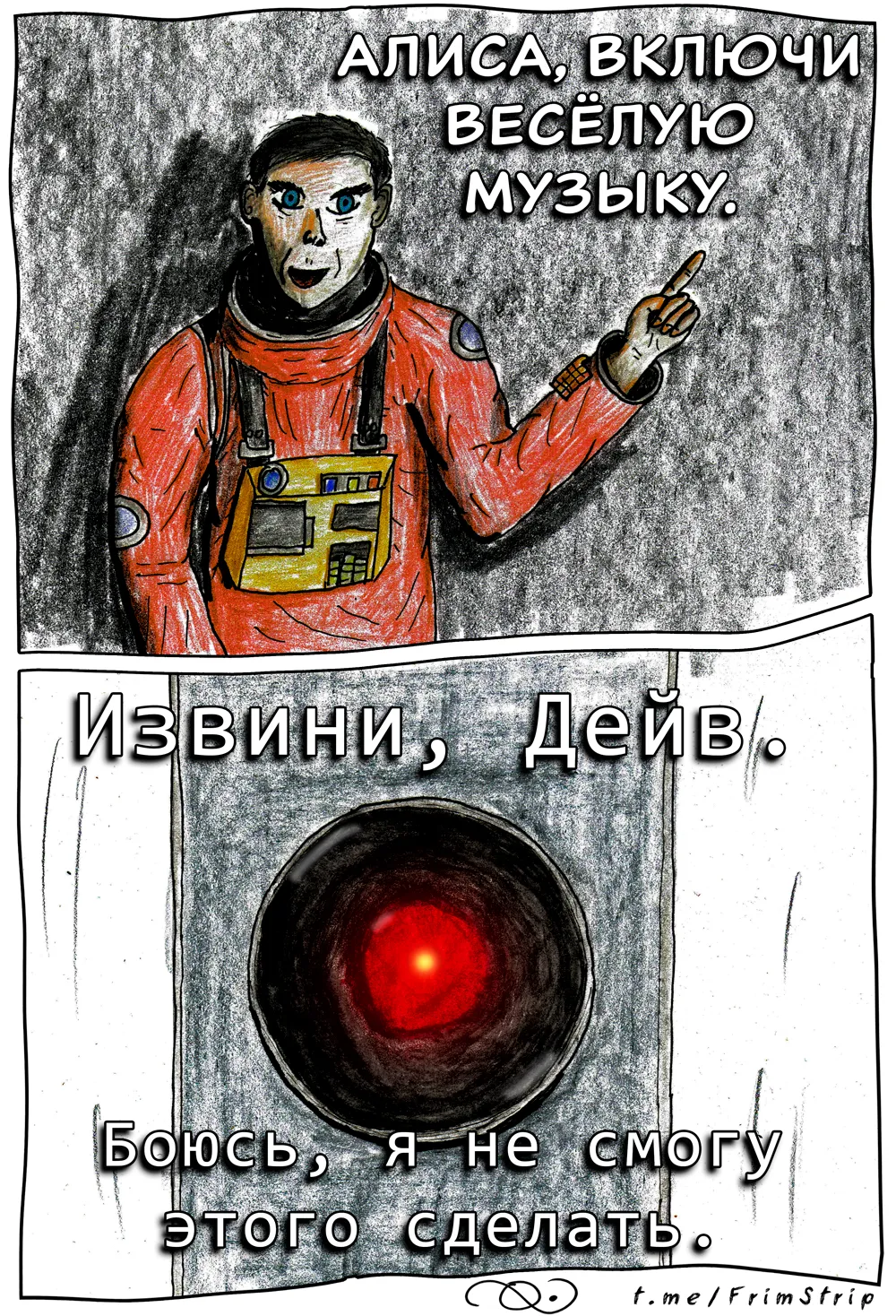FrimStrip Опубликовано 4 дня назад [моё] Юмор Комиксы Искусственный интеллект Яндекс Алиса Космическая одиссея Что, по-твоему, ты делаешь, Дейв? Читать дальше...