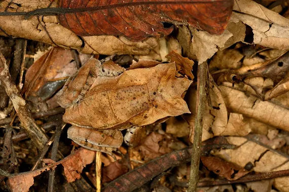 У чесночницы есть природный камуфляж, но не чесночный, а листочковый. Рога как раз помогают слиться с палой листвой, как и коричневая окраска. Небольшой размер (до 12 см) тут тоже в плюс.