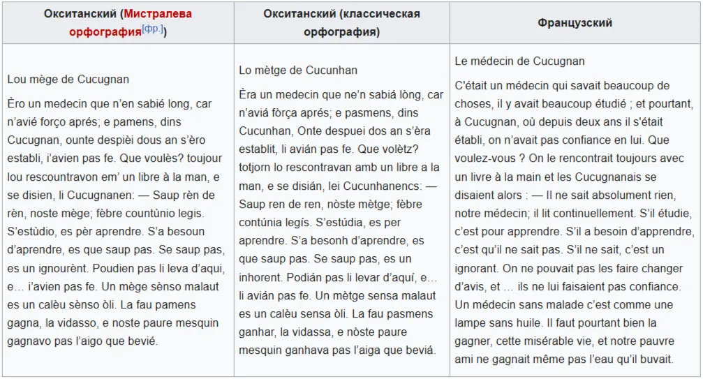 Он же провансальский (не путать с франко-провансальским!), лимузенский, язык ок (👌), язык трубадуров. Относится к романской группе и, по разным классификациям, входит в галло-романскую подгруппу или окситано-романскую подгруппу. Некоторые же исследователи выделяют пиренейскую группу, в которую включены окситанский, каталанский, гасконский и арагонский (нет, не сын Араторна) языки. Кто-то до сих пор срётся и называет эти языки диалектами, отказываясь принимать статус языка.