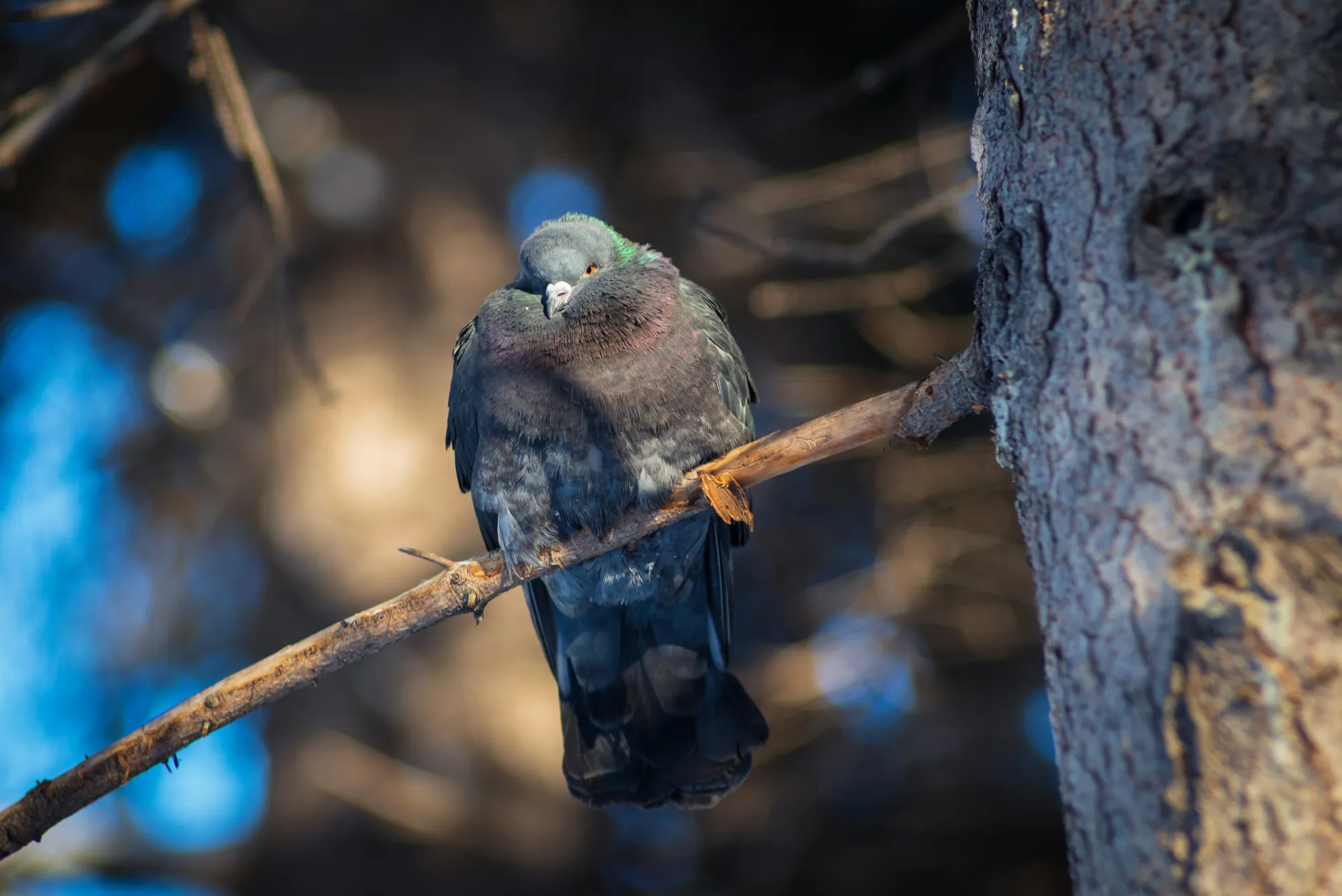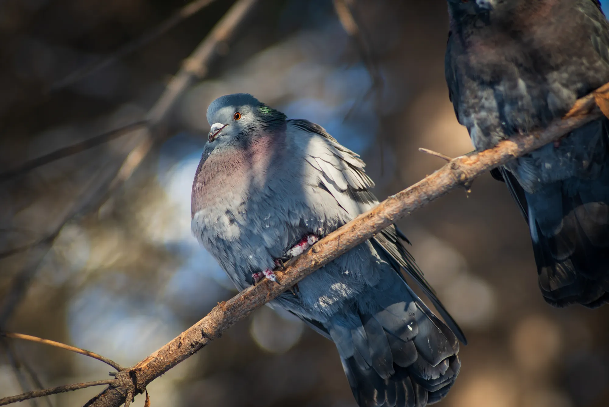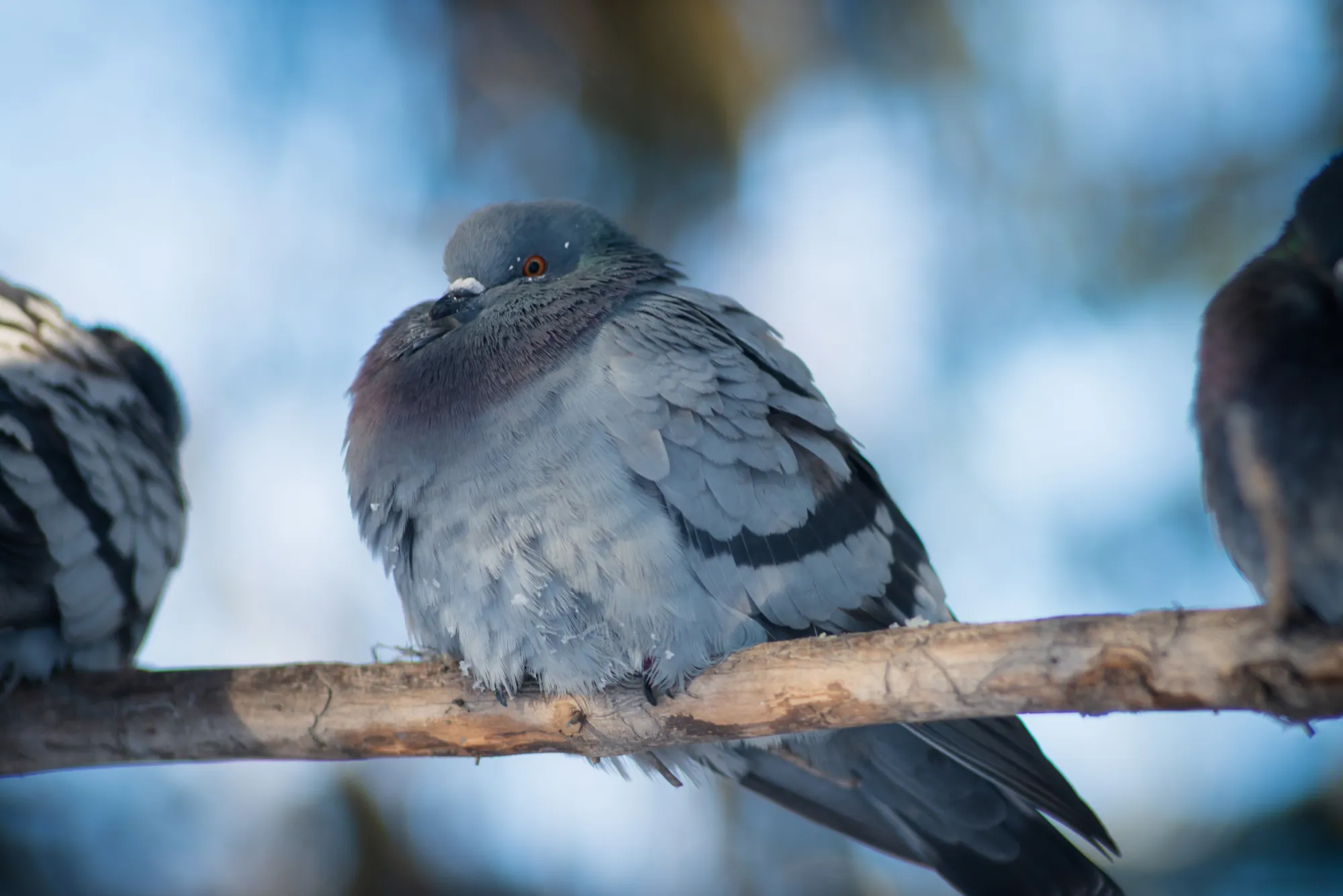 Третьего дня пошёл в парк. Думаю, пофотаю белочек в зимнем камуфляже для @rammdarkfunny А на улице минус сорок с хвостиком. Белки решили что "Ну его на фиг, честное слово!" И ни одна не вылезла. Потом к такой же мысли пришла фотокамера. Короче успел я сделать только пару кадров с голубями. Этим вообще по фигу мороз, как будто антифриза напились, сидят да курлыкают:)