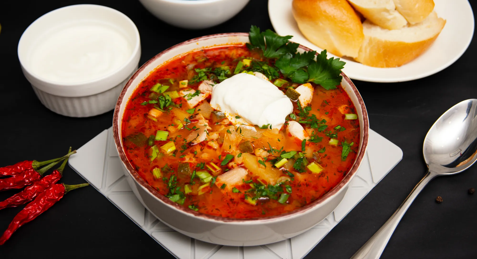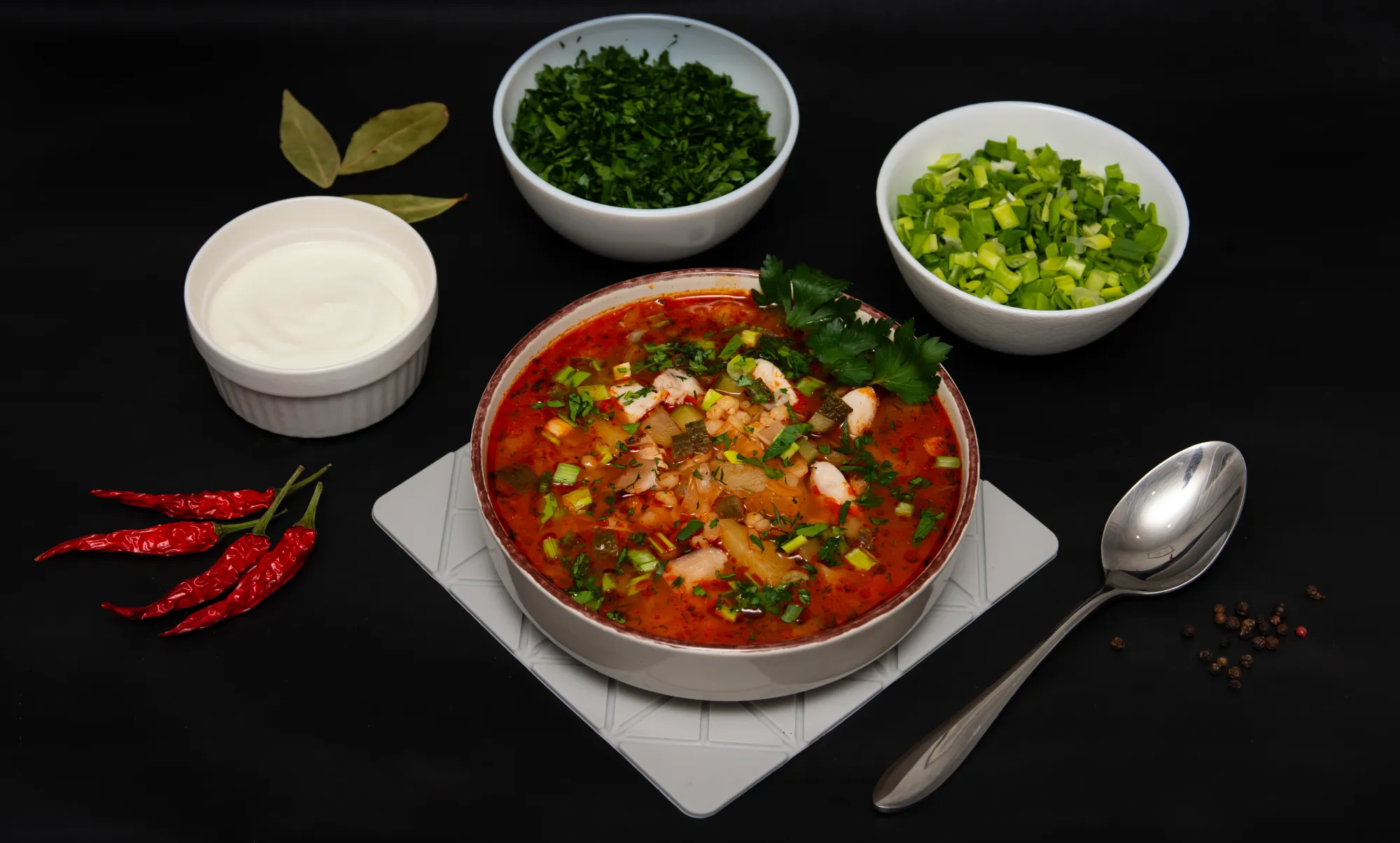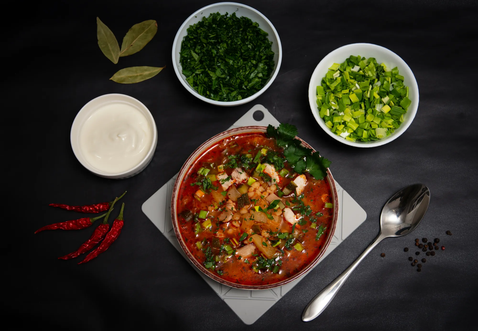Ну и финальная фотосессия. Правда, я её проводил уже на второй день, поэтому суп стал уже чуть более тёмным и более тяжёлым визуально, но всё равно ещё достаточно симпатичный. Ну а главное, очень вкусный! Рекомендую!