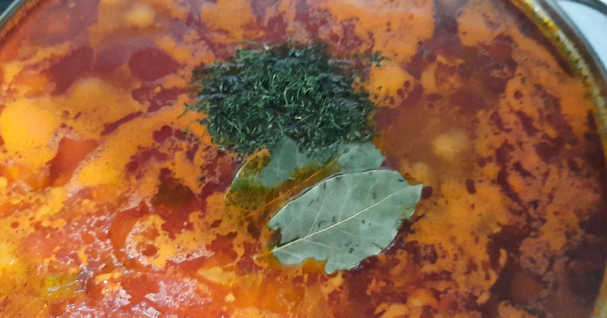 Выключаем огонь. Кидаем в кастрюлю пару лавровых листьев и добрую щепоть мелкорезанного укропа.