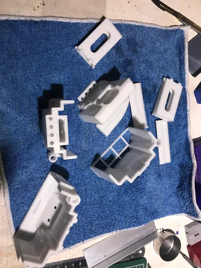 Нижняя часть самая замороченная, поэтому если для остальных деталей молдов два, то под эту сразу 4, тк заливается в несколько этапов.