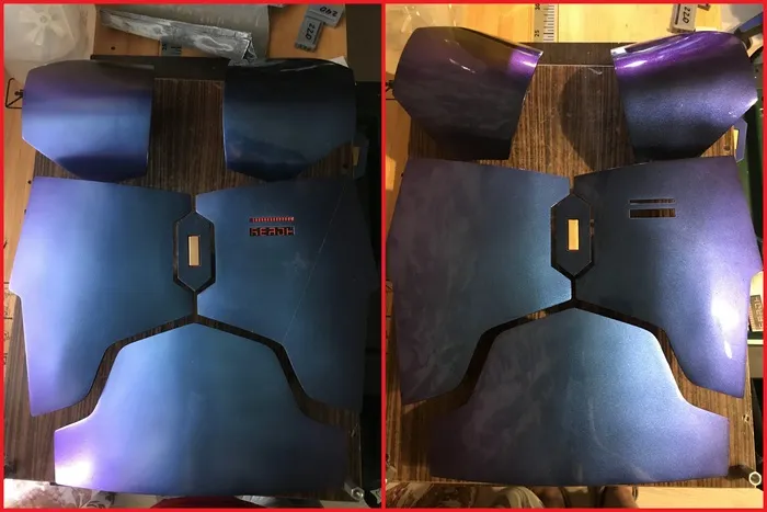 Готово. с парой нюансов - лак таки попортил эмаль и товарный вид... ну что ж теперь. пока останется как есть, так как позже будем делать второй точно такой же, ведь под мою броню их нужно два. ну и серебристая краска легла так себе...