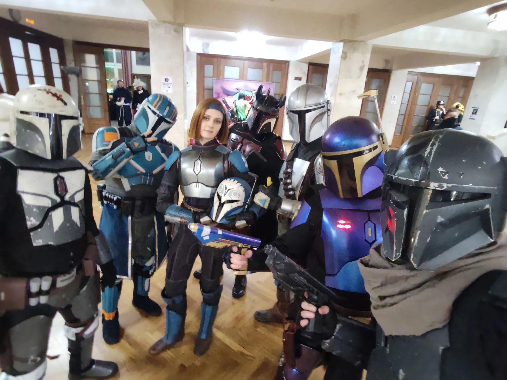 Собственно сам я пофоткался только в сугробе, все остальное фотографии фотографов и товарищей-мандалорцев) Также добавлю, что разница между фестивалями в МСК и в Казани по большей части в количестве людей, ну и площадка чуть менее приспособлена для некоторых косплееров (для меня лестницы и стандартные дверные проемы несколько проблемны, тк в броне по началу плохо ощущаешь свои габариты, плюс обзор в шлеме несколько хуже). А в остальном - тематические стенды, стенды с мерчем, да в общем то все то же самое, просто в меньших масштабах. Ну и сцена с сидячими местами, да еще и отдельно от всего остального - это тому же ЭпикКону не хватает катастрофически. В общем мне понравилось. А теперь я просто накидаю фоток в основном с собой и, если получится, подгружу видео с нашего нового хостинга)