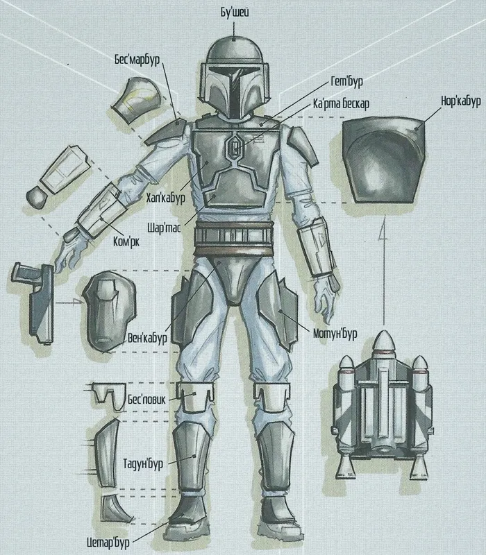 Мандалорская броня (бескар'гам на мандо'а, в переводе на общегалактический язык — железная кожа) была наиболее узнаваемым символом мандалорской культуры.