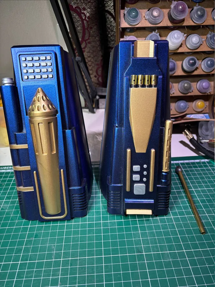 Модель А, уже отработанная, и перспективная модель В, если быть точным - все таки монолитный корпус добавляет сложностей при отливке, поэтому в перспективе он будет сборный. так как термальник это вообюще расходник, который будет "пропадать" со стенда и теряться с костюма, то я хочу сделать максимально быструю незамороченную систему "восполнения безапаса" в стиле развел смолу, залил и забыл. но пока есть как есть.
