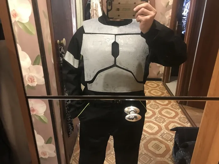 И собственно результат к этому моменту (да, наручи с наплечниками на общей фотке еще не доработаны). Спина единственный элемент, который делал не сам, а у знакомого уже под свои размеры - тратить месяц на литье из смолы под размеры которые даже измерит сам не могу - ну такое себе. ну и также готов жилет, на который половина всего будет крепиться и частично готов пояс, но о нем наверное в следующем посте