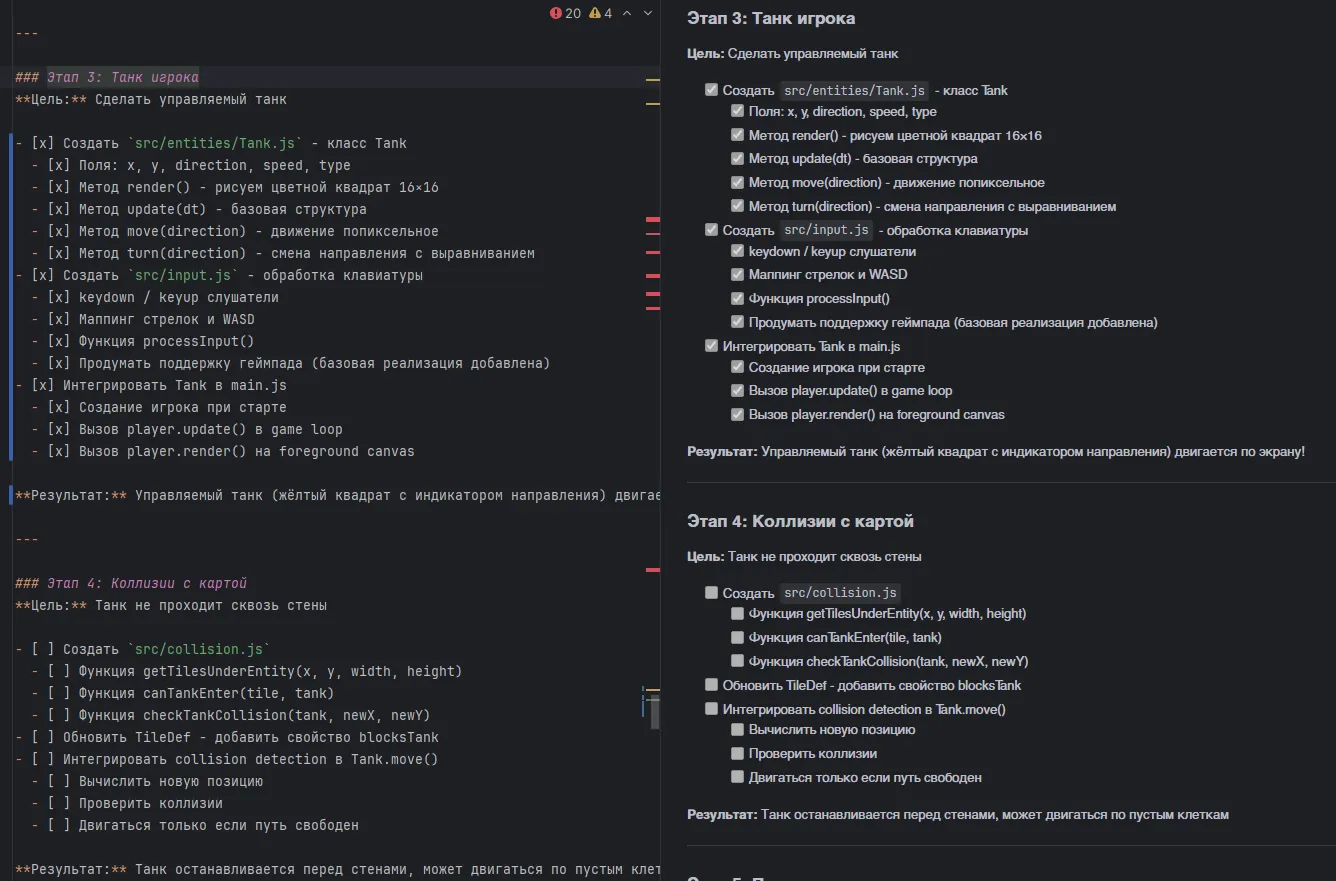 // TODO: Проверка коллизий с тайлами (Этап 4)