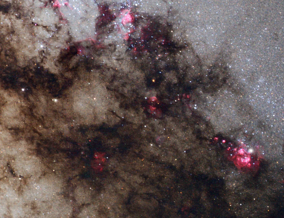 Помимо данных в видимом свете, это составное изображение включает ультрафиолетовое излучение, исходящее от молодых звёзд, и ближнее инфракрасное излучение, позволяющее увидеть структуры, скрытые пылью.