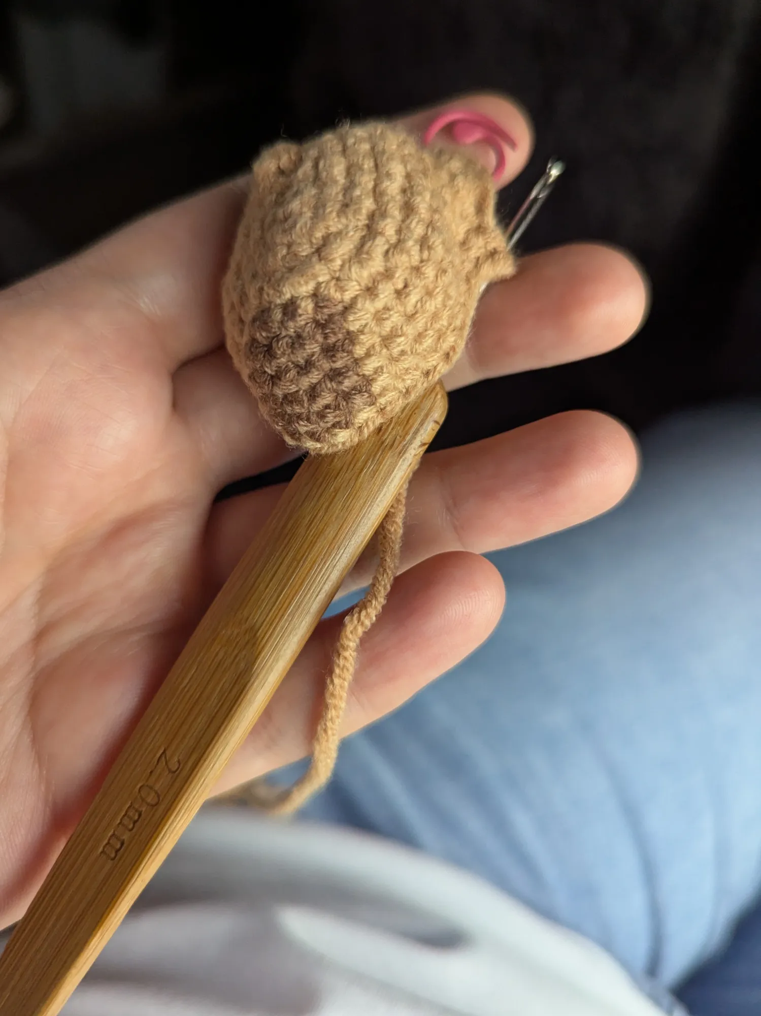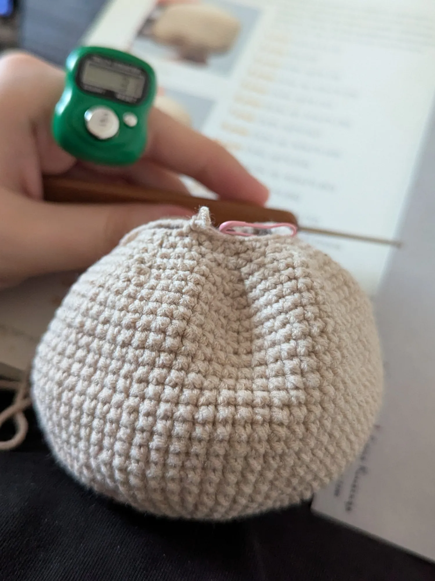 Первым делом взялась за голову. Настолько крупные шарики я на тот момент ещё не вязала, так что от монотонности разок умудрилась заснуть в процессе. Тогда меня это удивило и позабавило (я ещё не знала, что впоследствии буду практиковать такое регулярно).