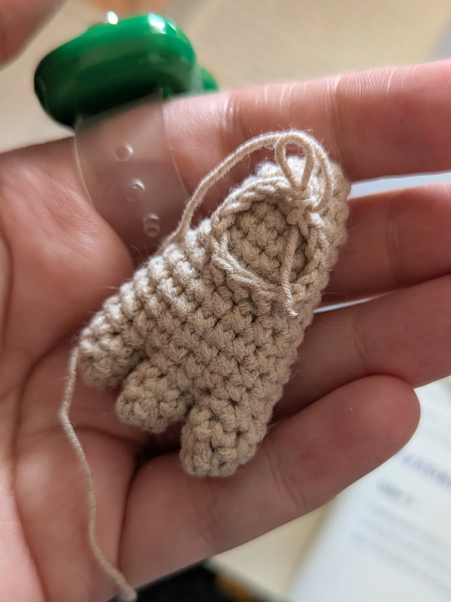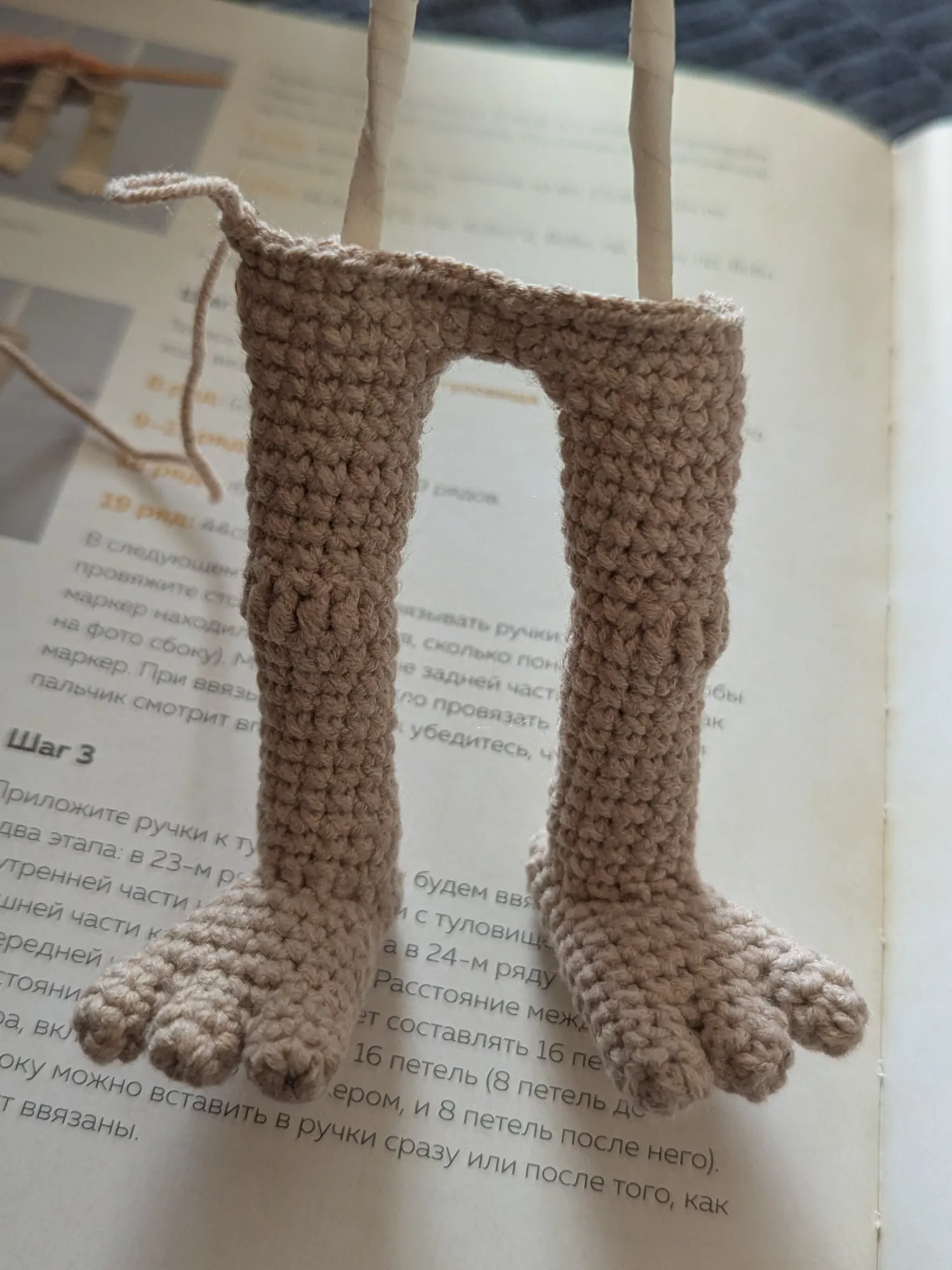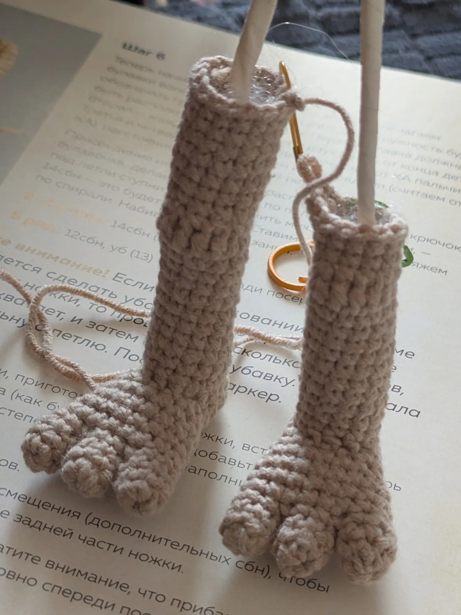 А теперь ноги. Из-за этих маленьких пальчиков я чуть не умерла от умиления – хотя вязать их было, конечно, непросто.