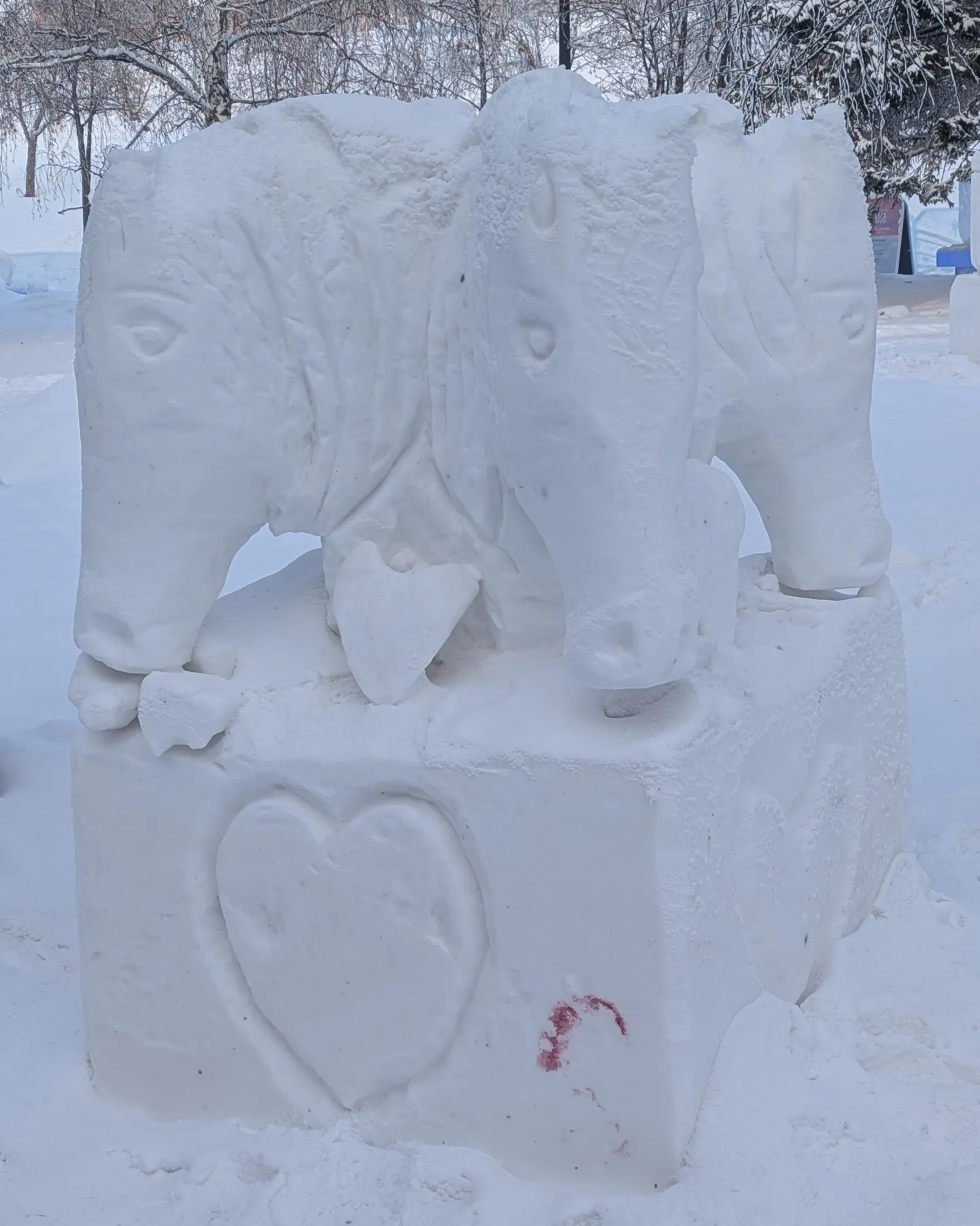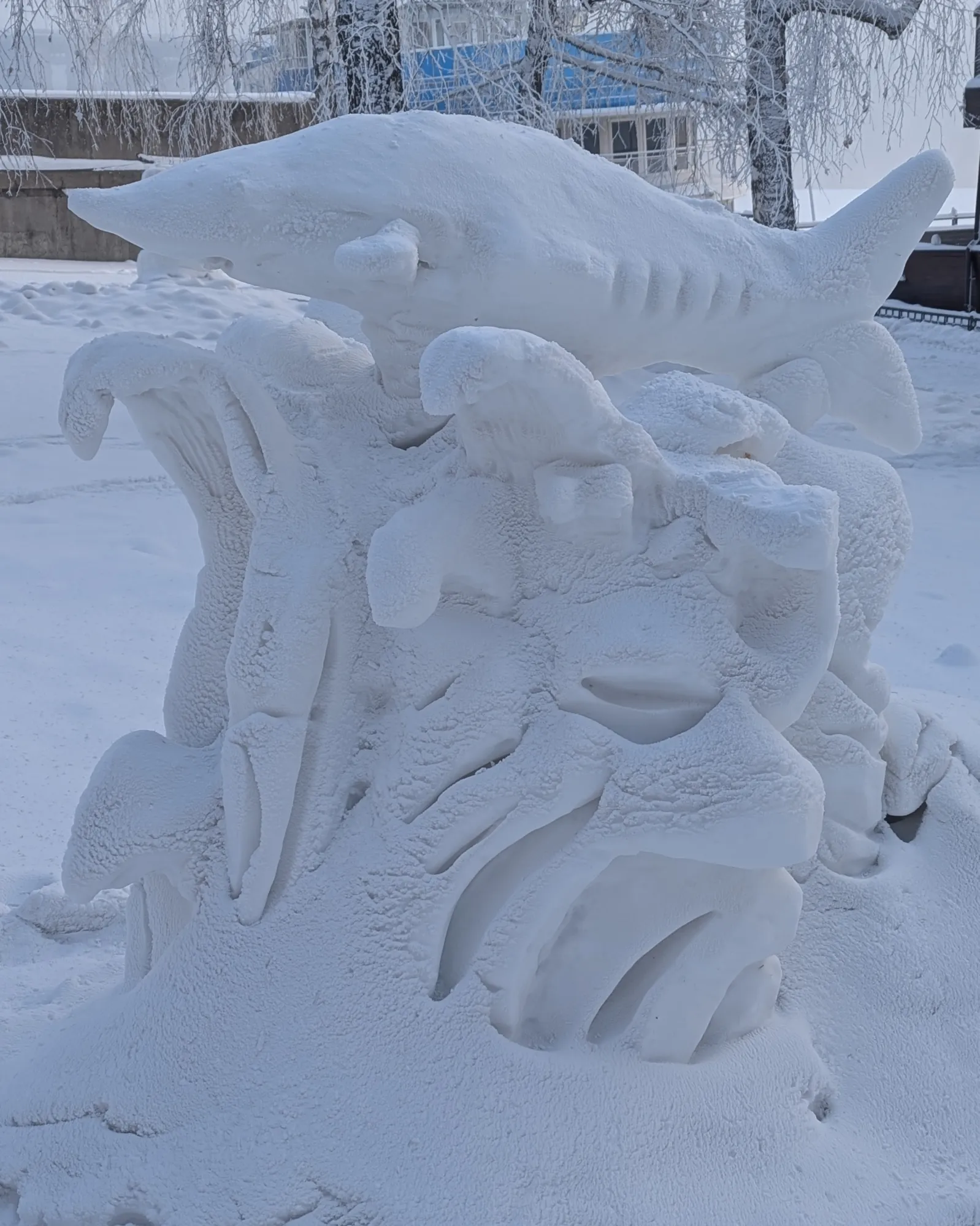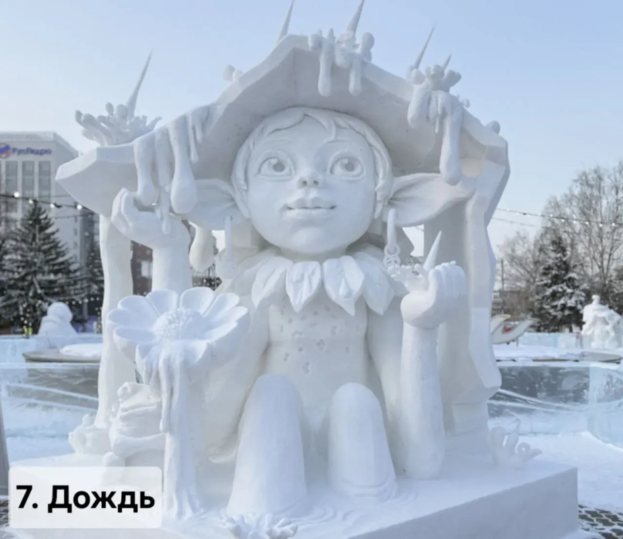 Вторая категория ледяных фигур – реализм. Здесь уже более узнаваемые образы, но от этого работы не становятся менее интересными.