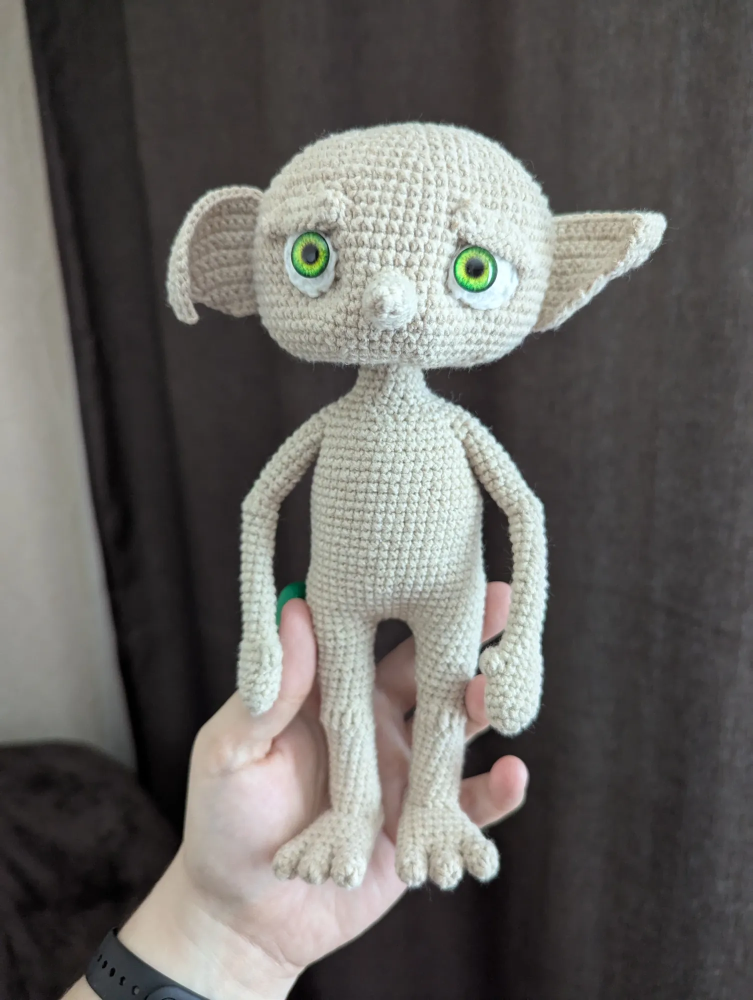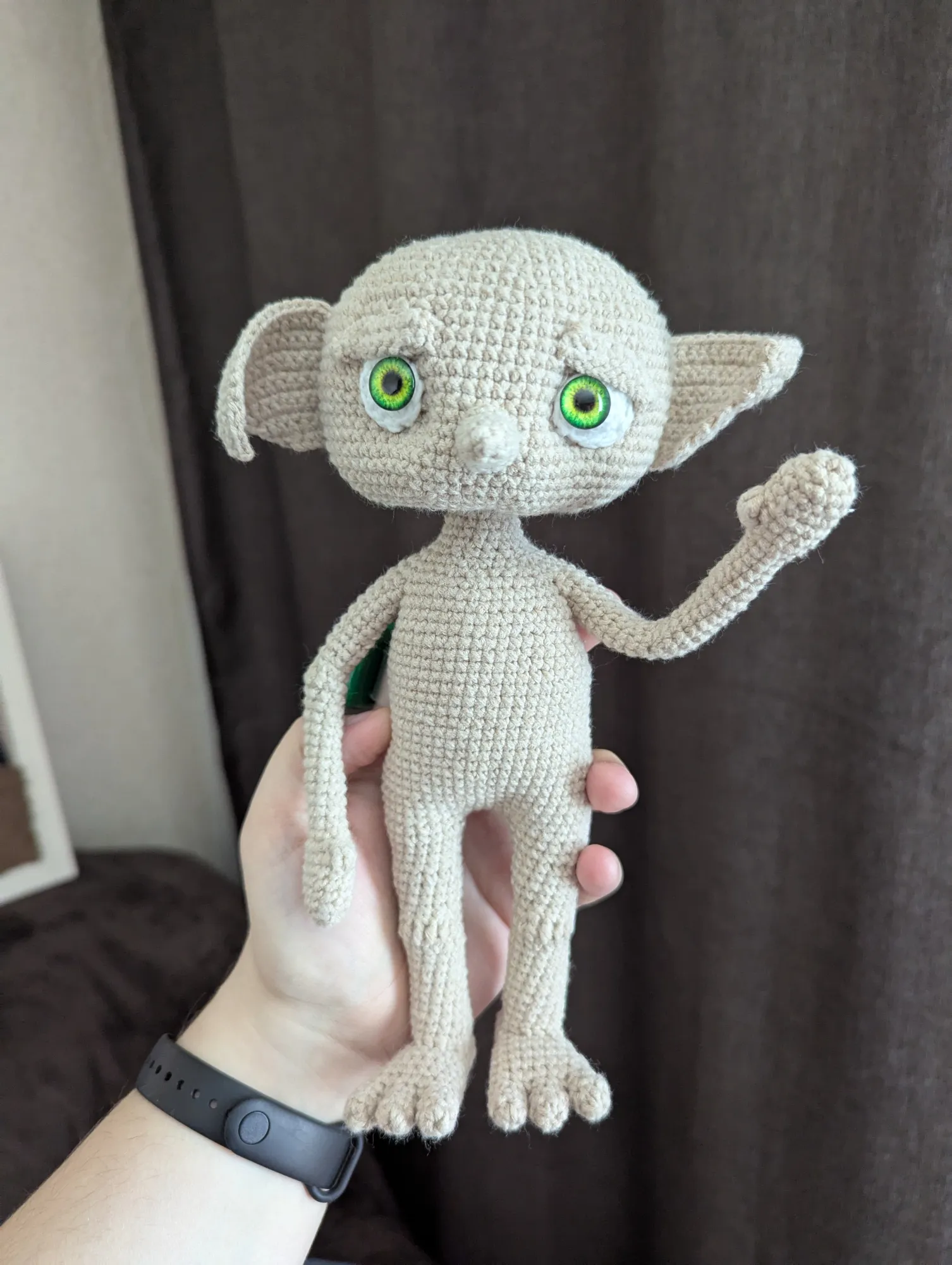 Тогда я была ещё совершенно зелёная в вязании крючком, так что решила начать с того персонажа, который может простить некоторые косяки – с Добби.