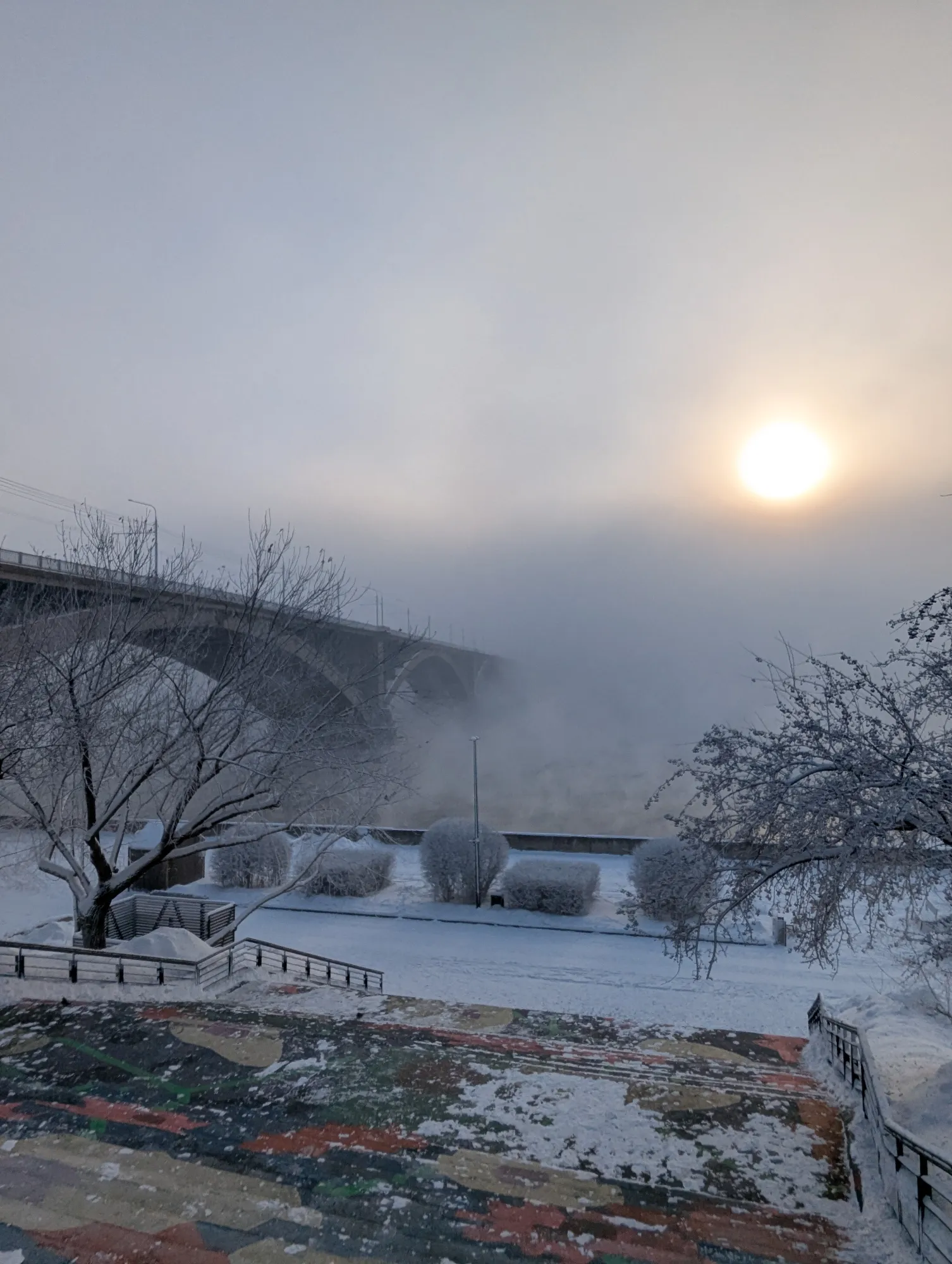 Этот конкурс стартовал последним, поэтому командам достались трудные погодные условия: крепкий тридцатиградусный мороз, а всего в нескольких метрах – незамерзающий, парящий Енисей.