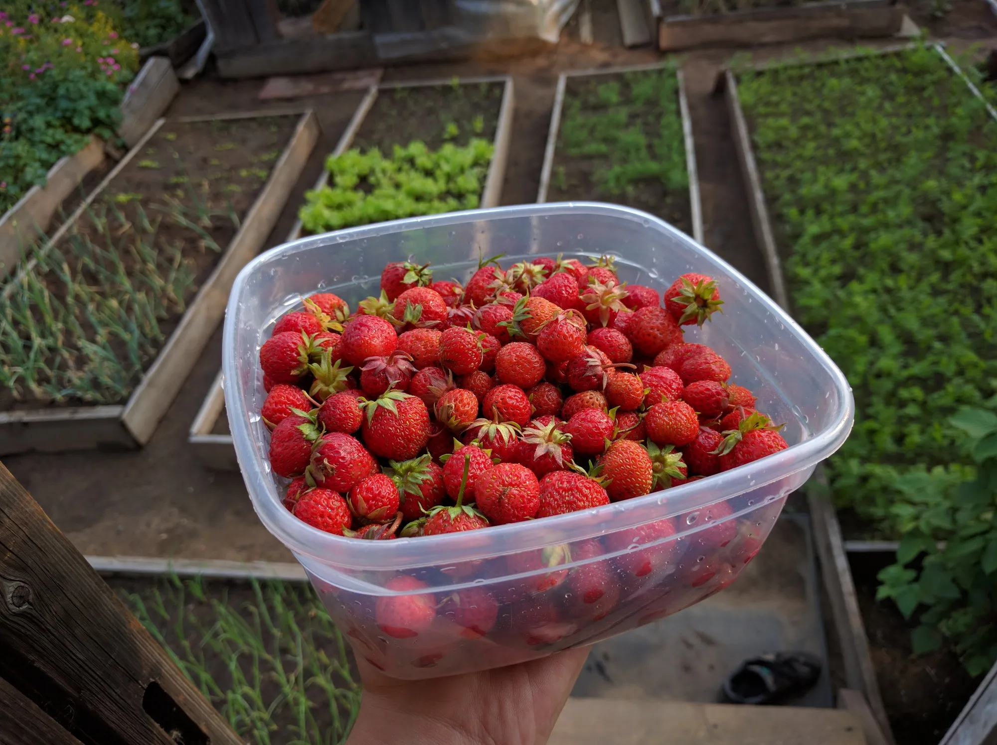 И раз уж мы перенеслись к огороду... Вы, возможно, привыкли к крупной, сочной клубнике. А для меня клубника – она вот такая: мелкая, кисленькая и очень вкусная.