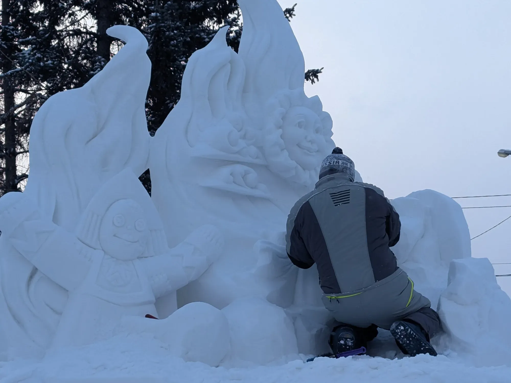 А теперь – вершина фестиваля: профессиональный конкурс. Профессиональные команды сформированы из (не поверите) профессиональных художников, скульпторов и архитекторов. В номинации «Снег» команды состоят из трёх человек старше 18 лет, а в номинации «Лёд» – из двух. На работу им давалось четыре дня.
