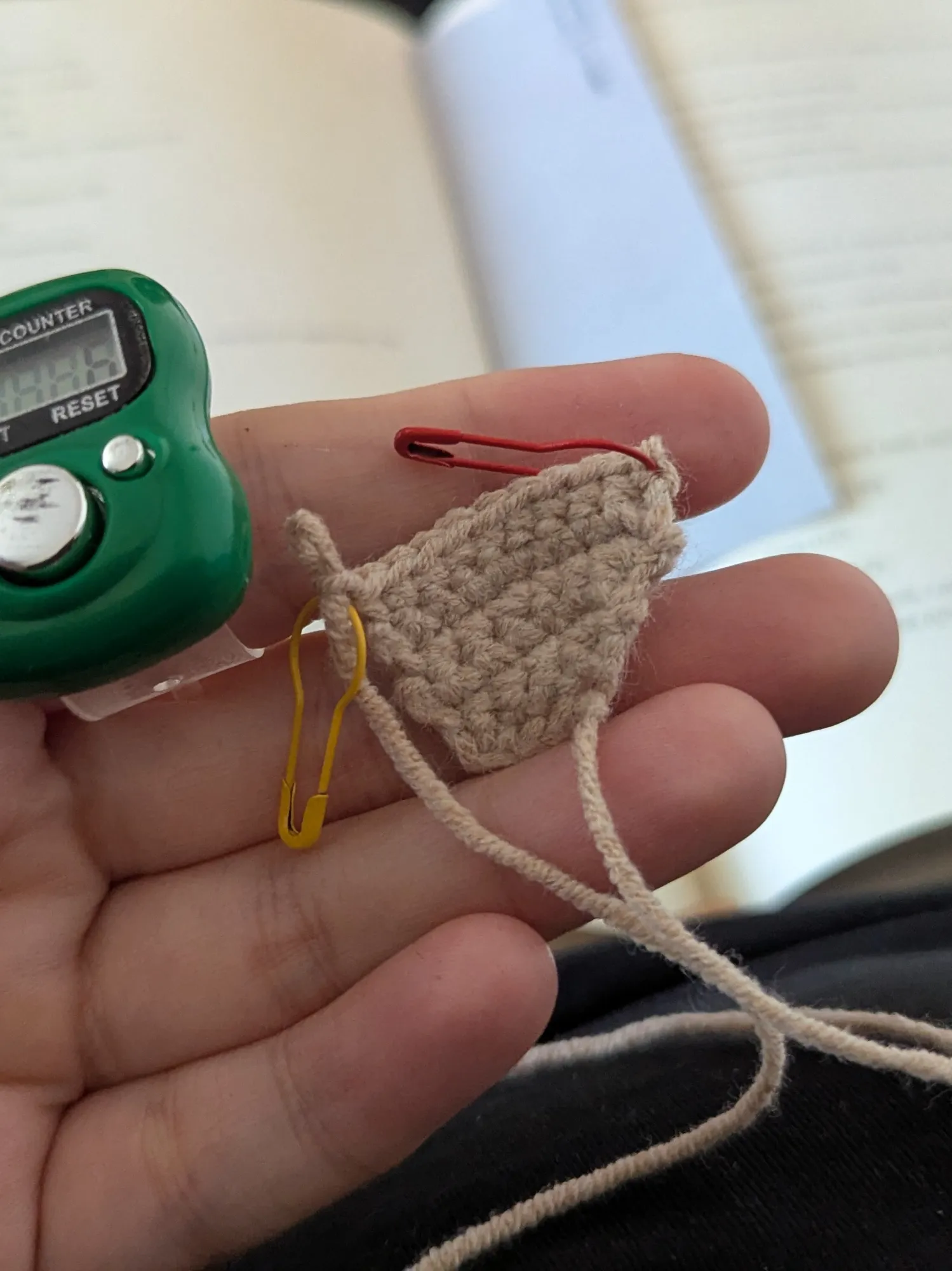 Дальше нужно было понимать, куда ввязывать нить для подъёма к голени, поэтому я вооружилась булавками.