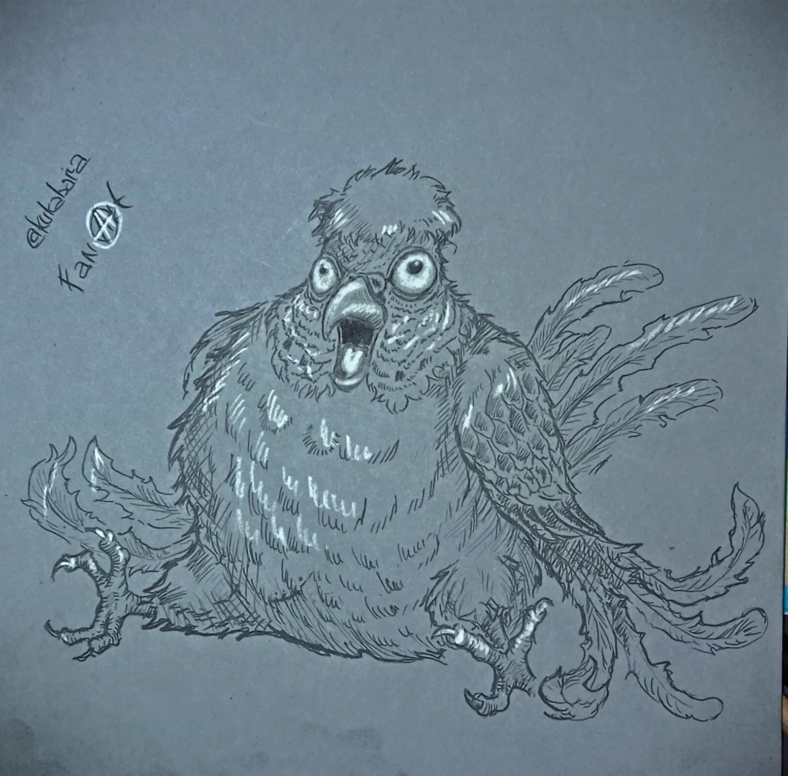 @Kukabara получай фан арт) колба в попугае. Научное моделирование показало, что он превращается в курицу)