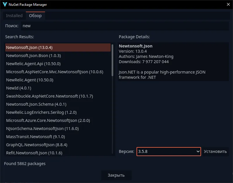 Ну и NuGetApiClient – логично, что дёргает запросы в сторону нюгета, для получения информации о пакетах.