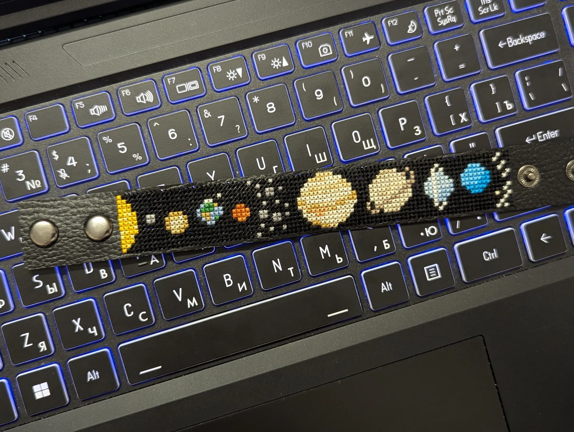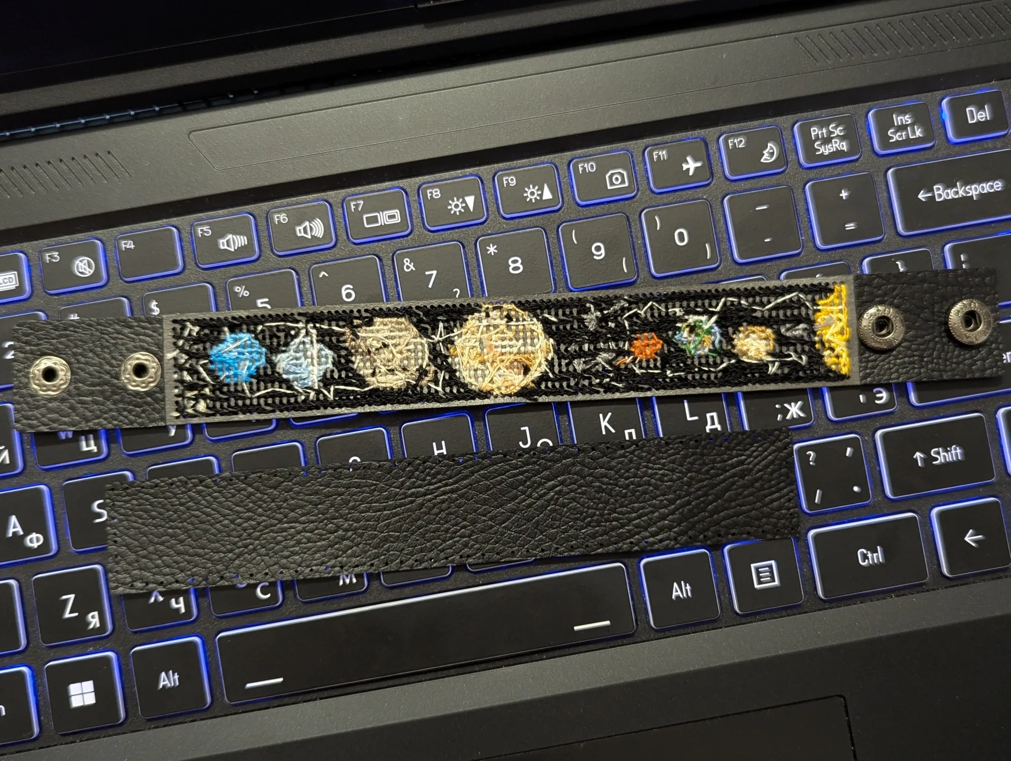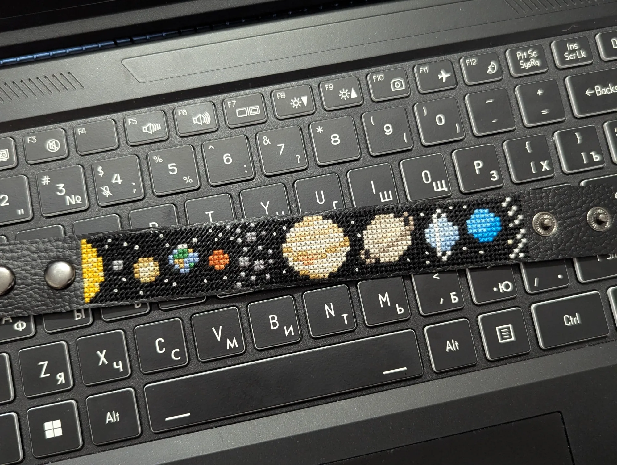 Спустя несколько лет, когда я вернулась к этому хобби, увидела очень красивый отшив, где планеты были расположены в ряд. Кинулась спрашивать, чьё это и где можно купить, но ответ был неутешительный: «Не продаётся, индивидуальный заказ».
