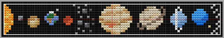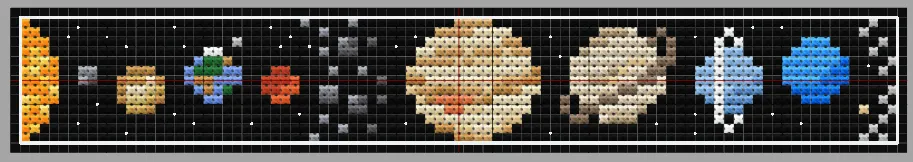 Теперь можно вернуть чёрную канву и начать заполнять планеты цветом. Для этого мне понадобилась картинка карты цветов: нитки дома, а мне срочно захотелось это делать здесь и сейчас. Забегая вперёд, скажу, что при вышивке поменяла 2 цвета – и то потому, что их банально не оказалось в моих запасах.